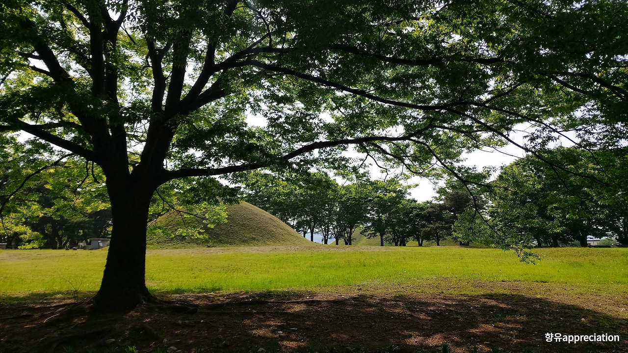 국립경주박물관에서 나와 조금만 시내 쪽으로 걷다 보면 우로는 안압지, 좌로는 월성이 나타난다. 시간이 충분하다면 안압지에 들러 신라시대의 궁궐과 정원을 거닐고 이어서 초기 신라의 성이었던 월성에 올라보길 권한다. 자연스레 둔덕을 따라 무리를 이룬 나무 그늘을 걷다 보면 어느새 발아래 고대신라의 유적지 발굴현장과 유적지들, 저 멀리 현재의 경주 모습이 한눈에 들어온다. 중간쯤 오른쪽으로 난 길을 따라 내려가면 신라를 건국한 왕, 김알지가 태어났다고 전해지는 계림으로 이어진다. 빽빽한 나무들이 공간을 품고 있는 평온한 숲 속에 들어서면 과연 여기에서 태어났다면 평온히 품어줄 수 있었으리라 여겨진다면 지나친 비약일까. 숲 너머로 부드러운 능선, 천년도 전에 잠든 이들이 여전히 함께 숨 쉬는 곳이 바로 경주임을 실감한다.