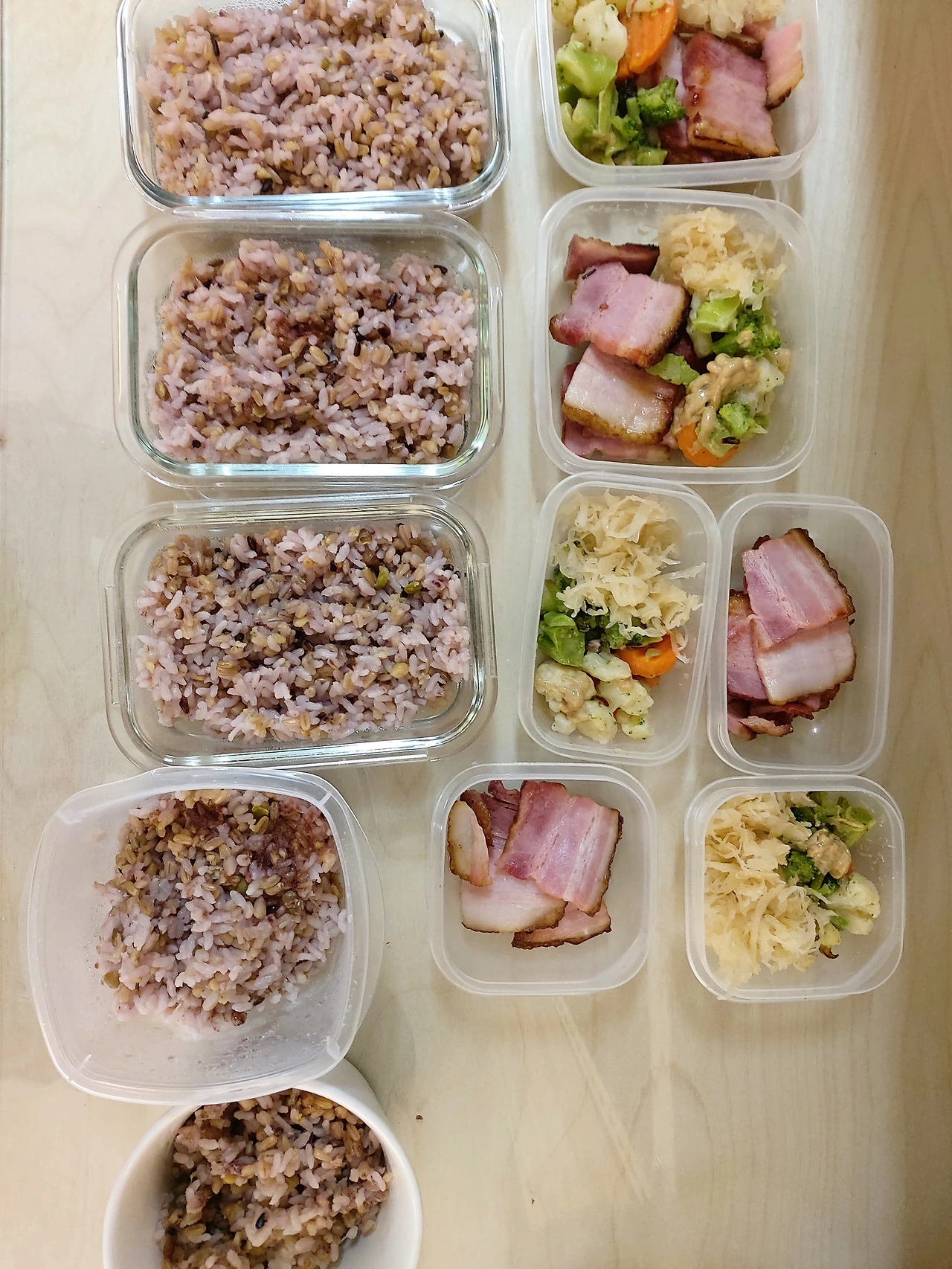 불을 적게 쓰는 요리를 하거나 불을 쓰더라도 번거롭지 않도록 양을 조절했다. 일요일에 한번 몰아서 일주일치 점심도시락을 밀프렙 하거나 여러 번을 반복할 필요 없이 넉넉한 양으로 요리해서 며칠에 걸쳐 나누어 먹기도 했다. 비빔면, 샐러드, 파스타와 같이 간단히 요리하고 시원하게 먹을 수 있는 것들. 빵, 통삼겹구이나 뢰스티, 감자구이와 같이 에어프라이어에 넣기만 하면 열기를 피할 수 있는 것들을 주로 먹었다. 선풍기를 틀고 에어컨을 돌리기를 기다리면서 요리를 하기에는 이미 일을 하고 돌아와 배가 고픈 상태로 지쳐있거나 다른 일들을 챙겨야 해서 마음의 여유를 갖고 기다리기가 어려웠다.