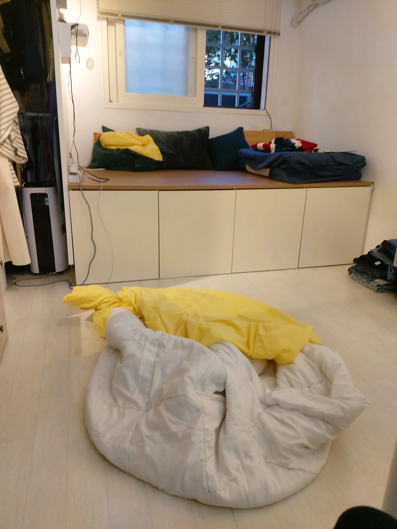 처서가 지나고 아침저녁으로 선선해지고 여름내 늘어졌던 몸과 마음을 다잡는 심정으로 간절기 정리를 했다. 여름 이부자리를 빨고 널어 일광소독을 하고 선풍기도 분리해서 청소해 다시 수납장으로 넣었다. 오래된 매트리스커버를 처분하고 새로 매트리스커버와 이불커버도 장 반해 정리하고 나니 좀 더 새롭게 공간을 꾸미고 싶은 충동이 일었다.