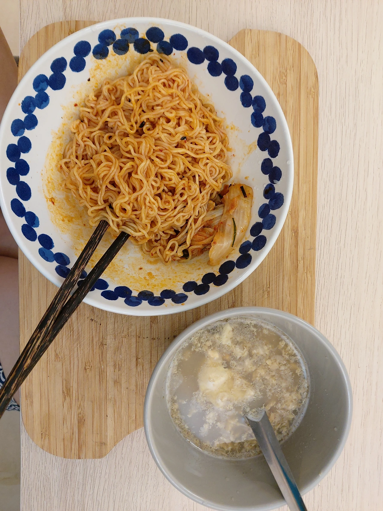 당연히, 몸이 힘들거나 마음이 힘들 때 요리에 소홀해졌다. 피곤하면 냉장고를 열어보는 것조차 귀찮았고 요리는 라면같이 물을 끓이는 정도로 간단하게 만들 수 있는 걸 선호하게 되었다. 지저분한 걸 그다지 좋아하지 않고 쓰레기나 치우지 않은 은그릇을 쌓아두는 게 더 찜찜했기에 설거지는 바로바로 해버리고 너무 피곤할 때에는 차라리 요리를 하지 않는 편을 택하곤 했다.