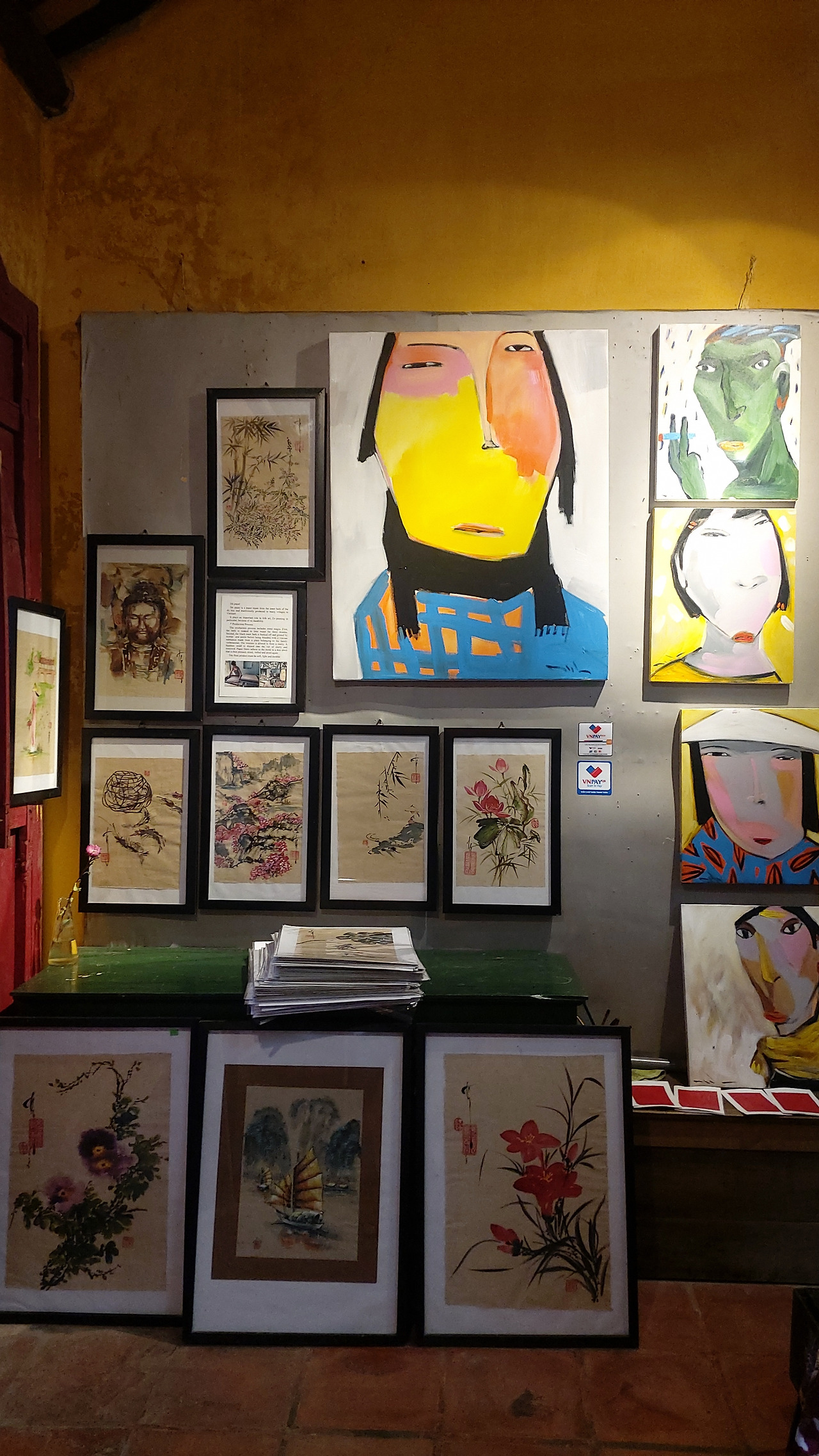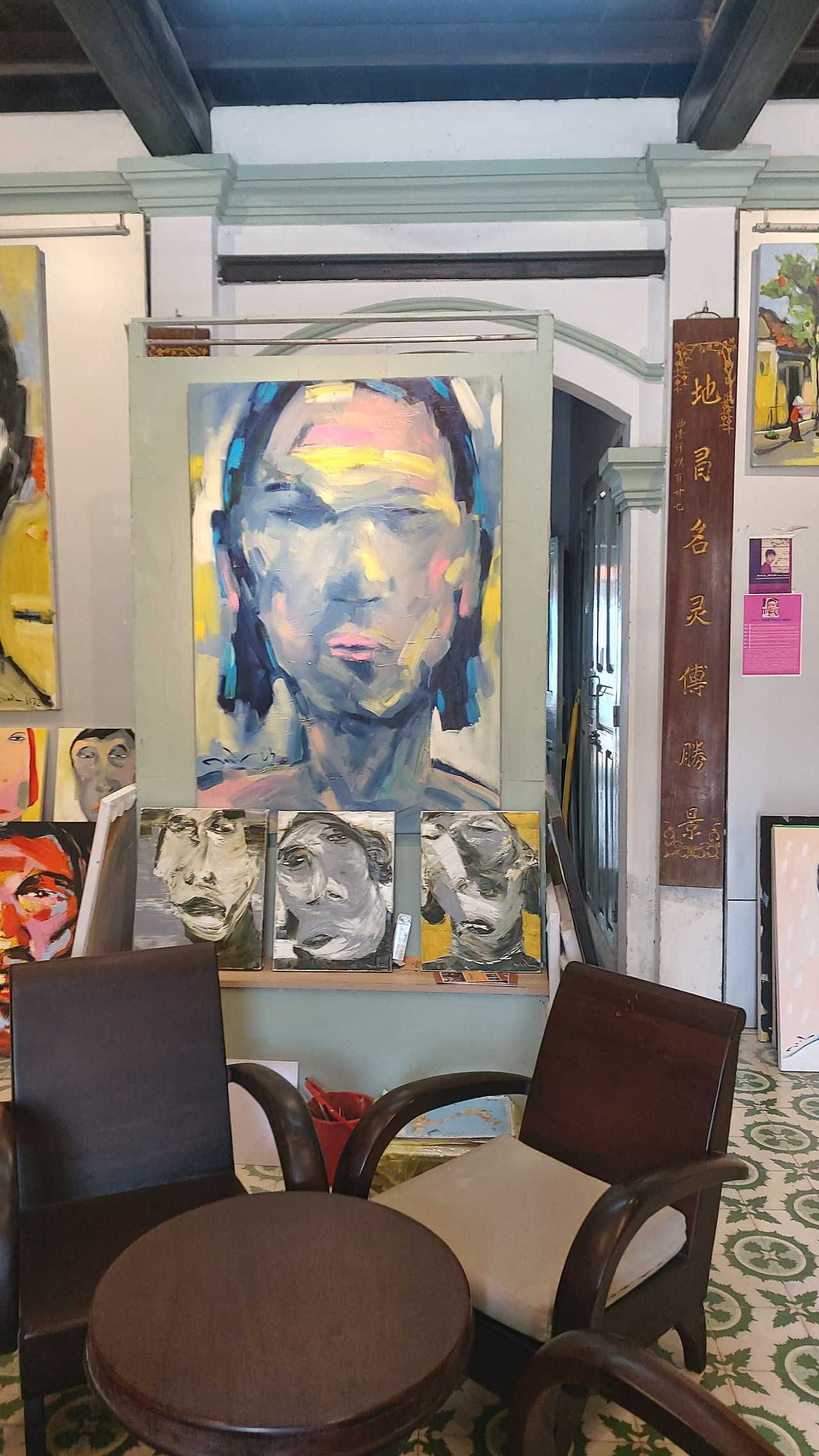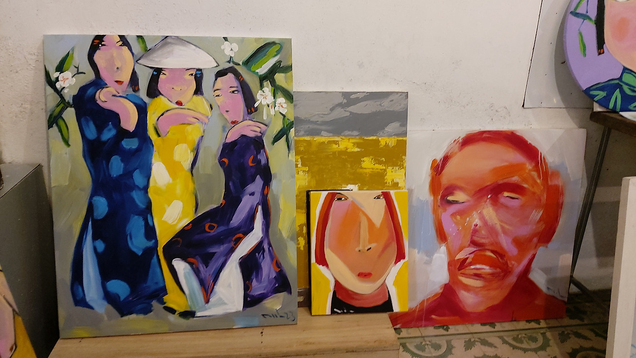 내가 방문할 때마다 공교롭게 작가분이 출타 중이었지만 본인만의 스타일로 그려내는 베트남여성들의 얼굴이 무언의 목소리를 내고 있는 듯 벽면을 꽉 채우고 있었다.