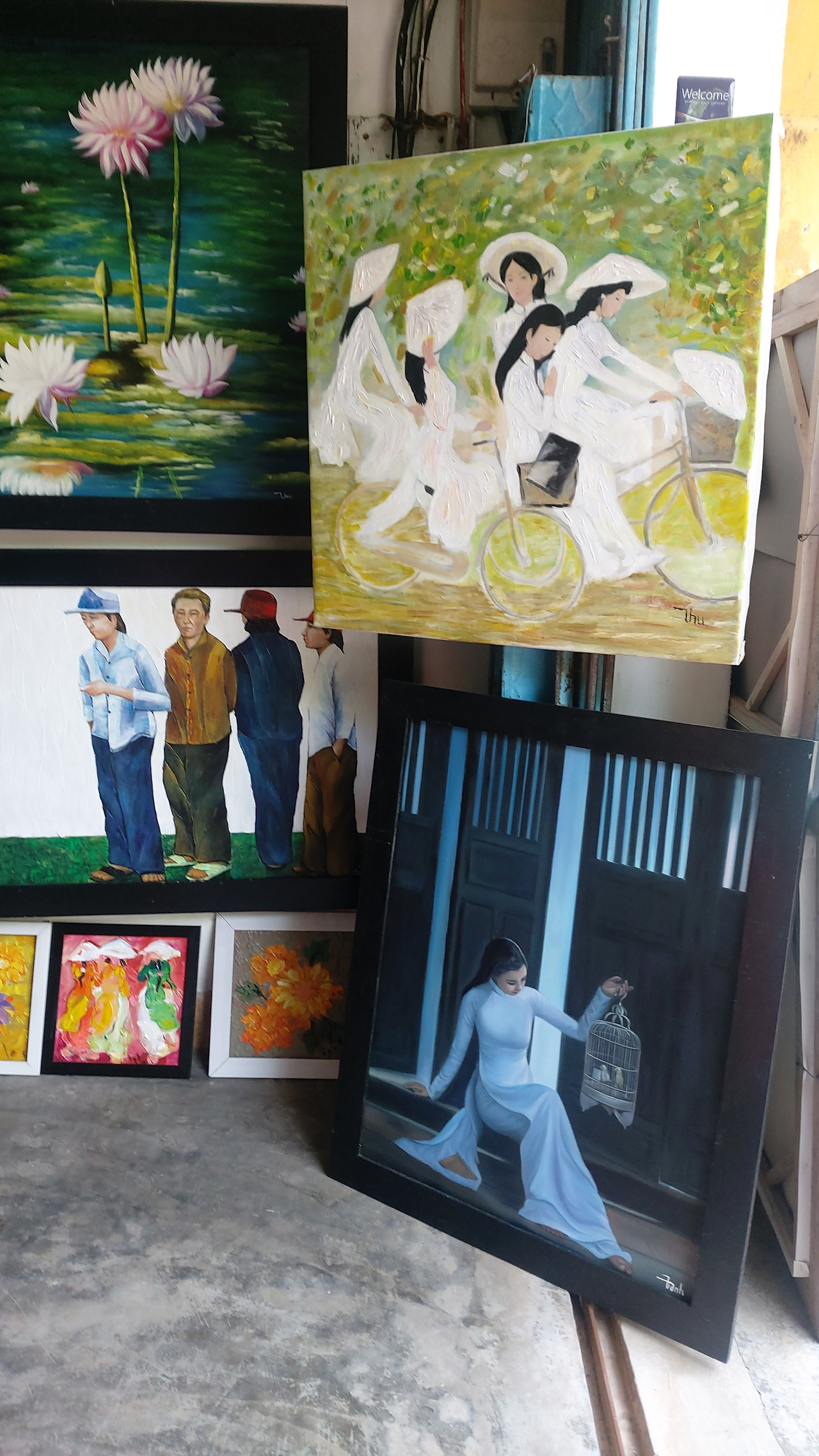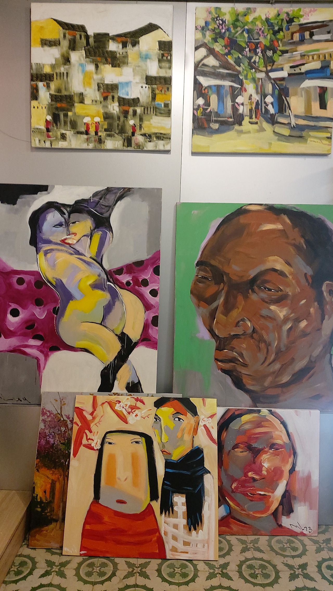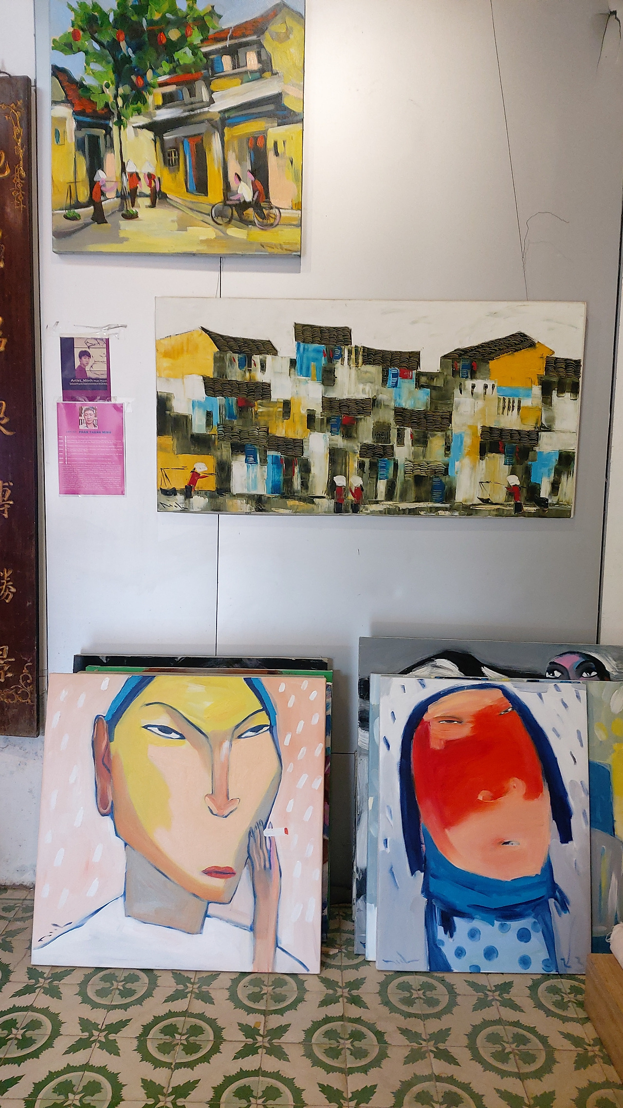 내가 방문할 때마다 공교롭게 작가분이 출타 중이었지만 본인만의 스타일로 그려내는 베트남여성들의 얼굴이 무언의 목소리를 내고 있는 듯 벽면을 꽉 채우고 있었다.