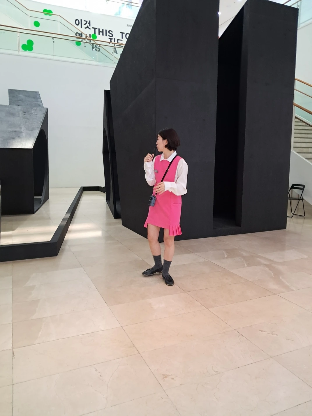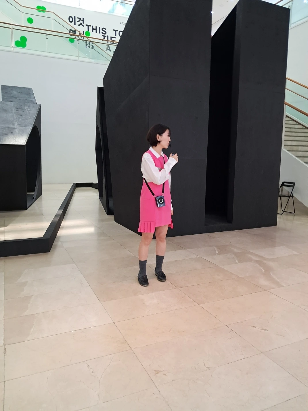 이번 비엔날레에는 늘 전시장 입구의 '나는 그 거리에 소속된다3' 작품에서 관람객들을 기다리는 것으로 도슨트를 시작했다. 미술관에 들어오자마자 버티고 있는 토크와세 다이슨의 육중한 건축적인 조각들 앞에서 사람들은 당황하기도 하고 어떻게 감상해야 할지 몰라 방황하기도 하고 우선은 그것을 배경으로 사진을 찍기도 한다. 그 육중한 존재감에 대한 농담- 왜 이런 걸 여기에 갖다 놓았을까요, 제목은 더더욱 이해하기가 어렵죠?-으로 관람객들은 조금씩 현대미술에 대한 불편함과 어려움을 내려놓고 다가오기 시작한다. 그들과 함께 작품 속으로 걸어 들어가 조각난 퍼즐을 맞추듯 작가의 이력을, 인터뷰를, 작품의 정보들을 풀어나가다 보면 관람객들은 이야기를 들으며 나와 눈을 맞추기도 하고 미소를 짓기도 하고 골똘히 생각하며 작품을 탐색하기도 한다. 그들의 변화무쌍한 표정들을 지켜보며 나도 모르게 응답하듯 미소를 짓게 되고 또 호응하며 대화하듯 이야기를 이어나가게 된다. 즐겁게.