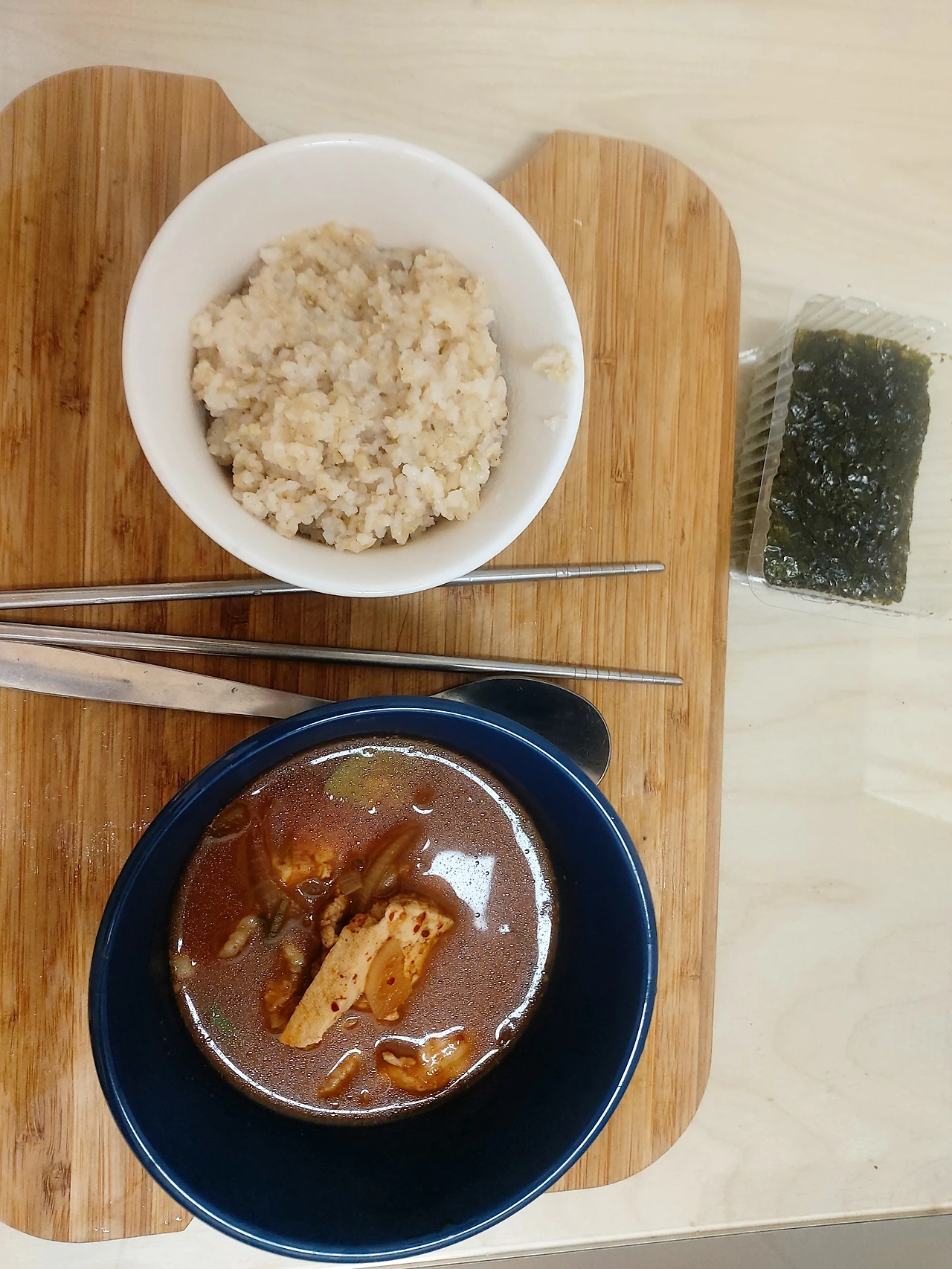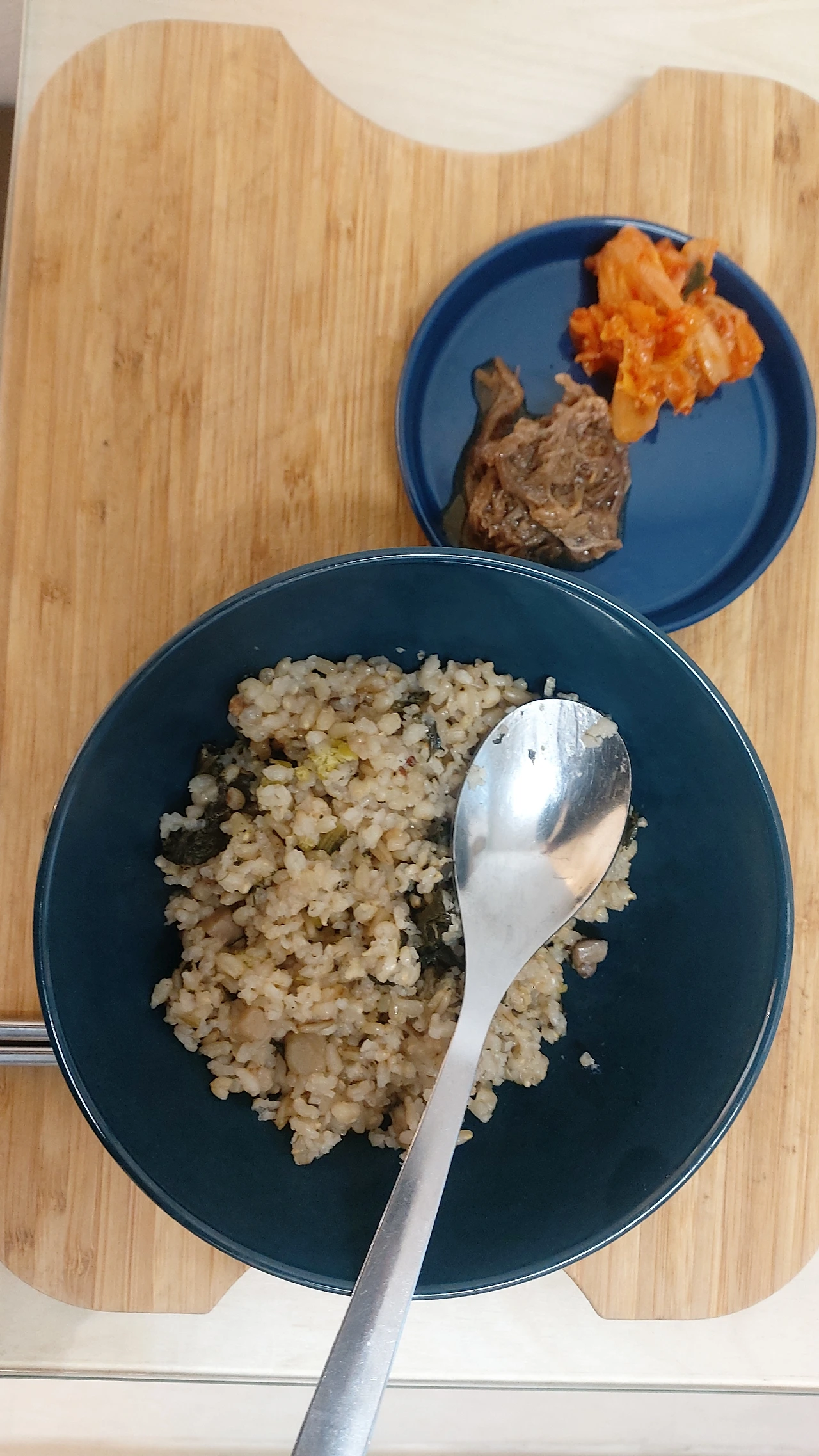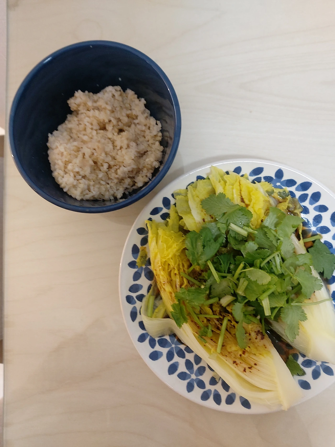 짜두고 지키지 못해 스트레스를 받기보단 느슨하게 시작해 보며 습관을 들여보기로 했다. 우선은 가진 재료들을 중심으로 3일간의 식단을 간단히 짜두었다. 아침은 간단히, 한 끼는 잡곡밥과 단백질과 야채를 포함한 반찬으로, 나머지 한 끼는 좋아하는 메뉴로 하되 역시 야채가 충분히 들어간 것으로. 냉장고에 묵어가고 있던 청경채와 상추, 달걀을 끼니마다 고등어, 장조림 등과 곁들이고 나니 한결 마음이 가벼웠다. 왜 그동안 식단을 짜는 것에 그렇게 거부감을 느꼈는지 의아했다.