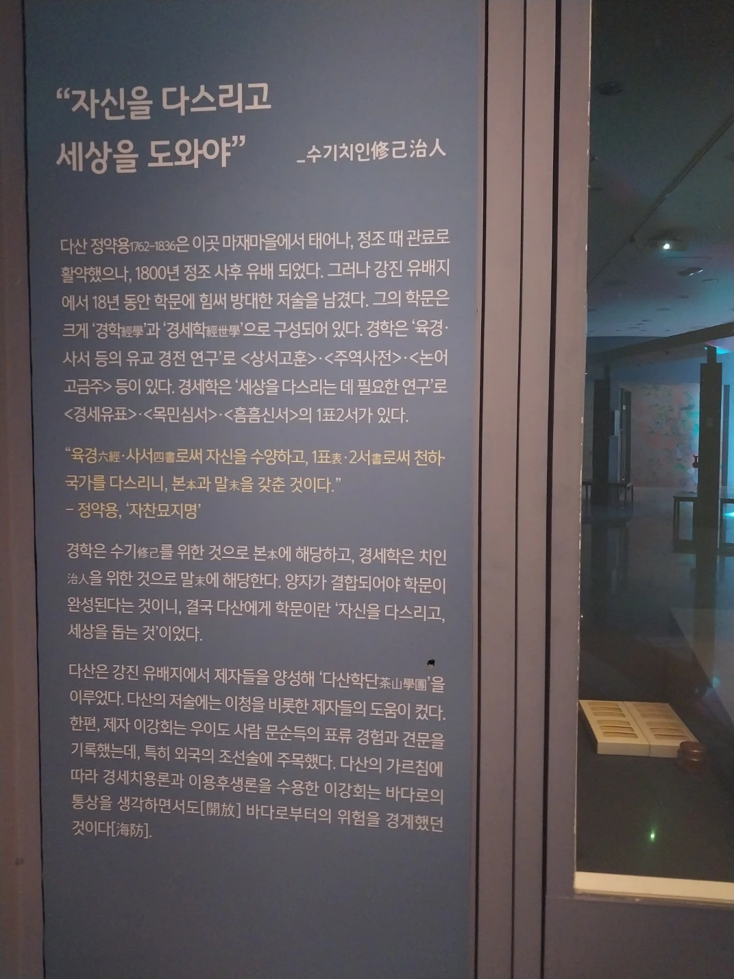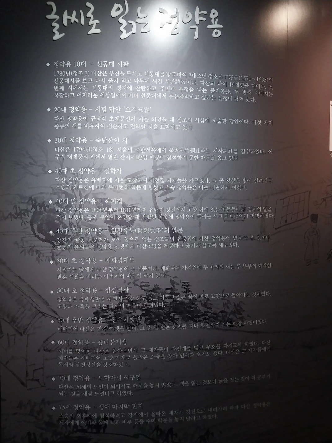 이어서 남양주 다산정약용 도서관, 다산정약용 유적지- 남양주는 정약용이 나고 자란 곳으로 귀양살이가 끝난 후에도 돌아와 생의 마지막을 보냈기에 그의 생가와 묘소가 붙어있다-와 근처의 실학박물관, 각 전시실과 콘텐츠의 중요한 내용들 역시 조사하고 정리하며 콘텐츠를 시각화할 준비를 일단락했다.