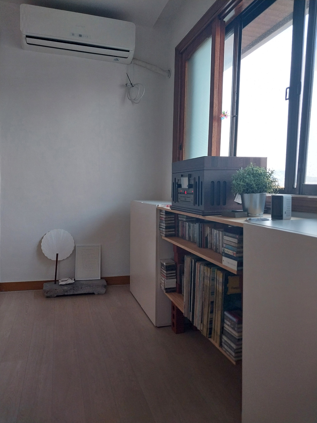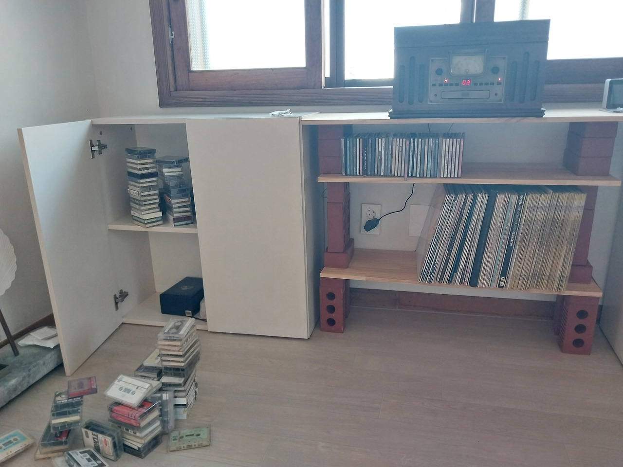 나는 취향을 더하기로 했다. 인테리어 후 남아있던 자재들에 철물점에서 한 장에 천 원 하는 벽돌을 사서 거실 창 아래에 선반을 만들었다. 아래 두 칸에는 어린 시절부터 모았던 테이프와 CD, LP, 엄마 아빠가 남긴 테이프, LP들, 언니들이 남기고 간 오래된 테이프, CD, LP들까지 정리해 넣고 제일 위 칸에는 멀티플레이어를 올려두었다. 버리지 않고 모아두었던 것들을 손이 닿지 않는 곳에 쌓아두는 대신 언제든 꺼내어 보고 들을 수 있도록 배치했다. 유품을 정리한다는 말은 종종 처분을 의미하는 것처럼 들릴지도 모르겠다. 하지만 나는 다른 일을 하고 있었다. 기억을 버리지 않으면서 생활 안으로 들이는 것. 때때로 꺼내어 다시 마주할 수 있는 자리에 두는 것. 그것이 내가 유품을 다루는 방식이었다.