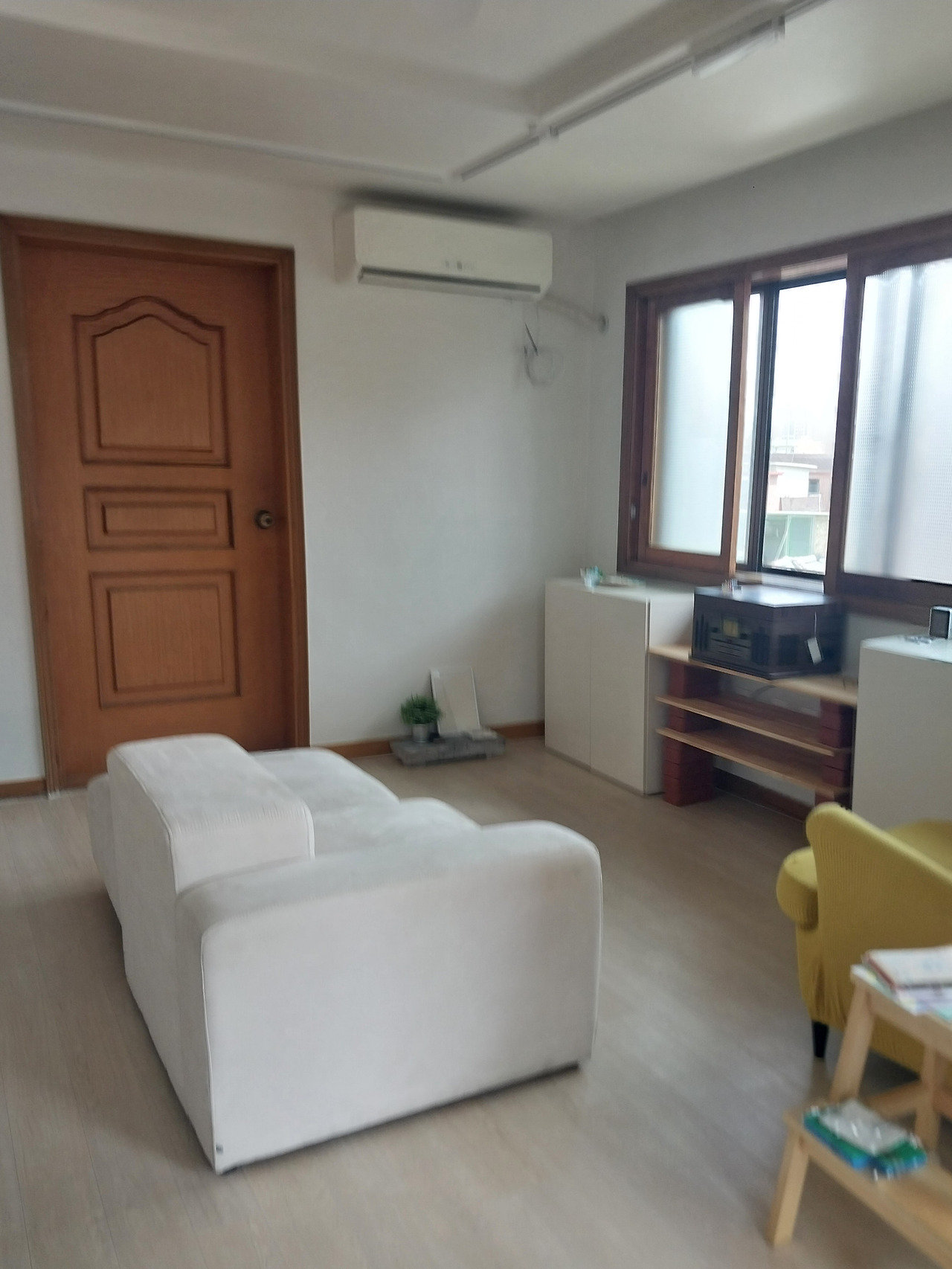 마지막으로 당근에서 부엌에 추가할 원목의자 둘과 팔걸이와 스툴을 분리해서 다양하게 배치할 수 있는 모듈소파, 그리고 일인용 윙체어를 들였다. 나머지는 불편에서 필요를 확인하고 공간의 용도를 더해주었다면 윙체어는 사실 필요보다는 바람 때문이었다. 하루를 마무리할 때 침대에 곧바로 눕거나 작업을 하던 책상에 앉아서 노트북이나 스마트폰을 보기보다는 창밖을 보며 잠시 마음을 가다듬을 수 있는 자리를 갖고 싶었다. 아마도 나는 쉬는 방식을 바꾸고 싶었던 건지도 모른다. 어쨌거나 가구가 하나씩 들어오면서 생활의 루틴도 함께 자리를 잡았다. 가구가 생활을 정돈하고, 정돈된 생활이 다시 다음에 무엇이 필요한지 혹은 무엇이 충분한지 드러냈다. 물건과 생활이 서로 영향을 주고받으며 새로운 루틴을 만들고 있었다.
