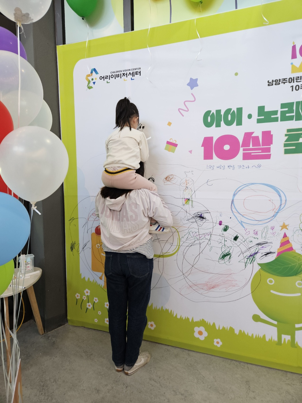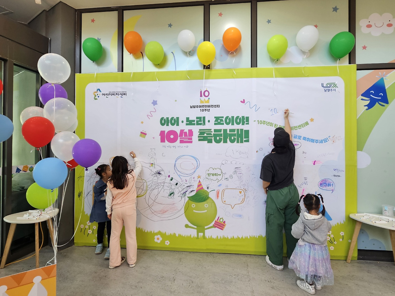참여를 설계한다는 추상적인 질문은 남양주어린이비전센터라는 실제 공간과 환경을 마주하며 구체적인 프로그램의 형태로 번역되기 시작했다. 어린이비전센터는 개관 10주년을 맞고 있었다. 어린이날 프로그램을 구상하며 비전센터의 연혁과 발전과정을 조사하고 미션과 비전을 정리하며 센터를 하나의 ‘열 살 어린이’로 상상해 보았다. 태어나고 성장해 이제는 어린이와 곁을 나란히 하는 어린이비전센터. 그렇게 어린이날의 주인공인 아이들과 함께 공간의 생일을 축하하는 프로그램을 만들기로 했다.