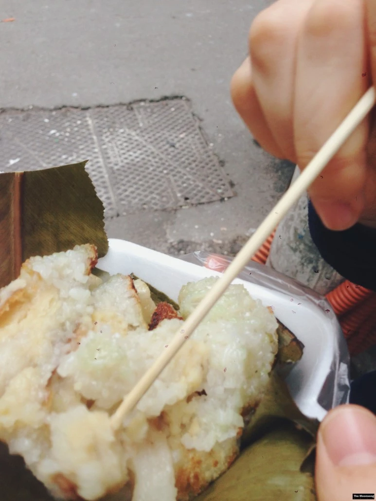이른 아침, 쌀쌀한 공기에 코끝이 차가워지는 걸 느끼며 원데이투어 가이드를 기다리다가 솔솔 스며드는 고소하면서도 달큰한 냄새에 참지 못하고 사버린 찹쌀밥. 따끈한 온기가 전해지는 바나나잎을 조심스레 펼쳐 진밥같기도 하고 떡같기도 한 윤기좔좔 흐르는 찹쌀밥을 오물거리자 그안에 든 달콤한 소와 함께 녹아버리듯 입안에서 사라졌다. 할머니는 우리가 투어가이드를 따라 골목을 떠날 때까지도 골목중간에 앉아 바쁘게 하루 일과를 시작하는 현지인들에게 찹쌀밥을 팔고 있었다. 여행객들의 번잡함과 현지인들의 분주함이 뒤섞인 하노이의 어느 뒷골목 아침풍경.