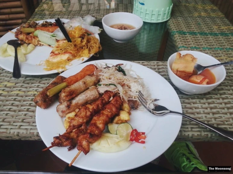 원데이투어를 떠나 땀꼭으로 향하는 여정 중 제공된 점심식사. 관광버스에서 내려 식당으로 들어가자 우리 일행 외에도 다른 여행객들로 북적거리는 부페에서 음식을 골라 담아 식사를 할 수 있었다. 볶음밥과 꼬치구이, 어묵, 볶은 국수와 야채, 각종 과일 등 몇 번이고 접시를 들고 들락거리며 배터지게 먹을 뿐.