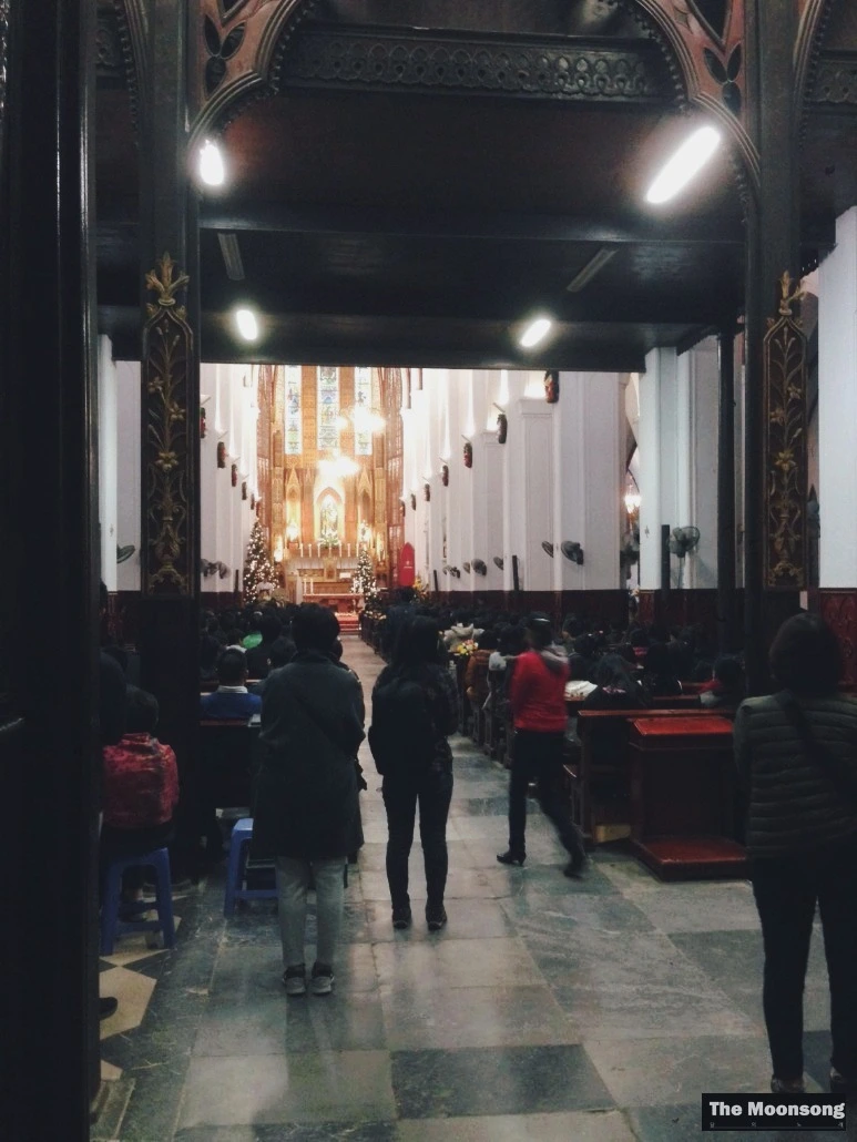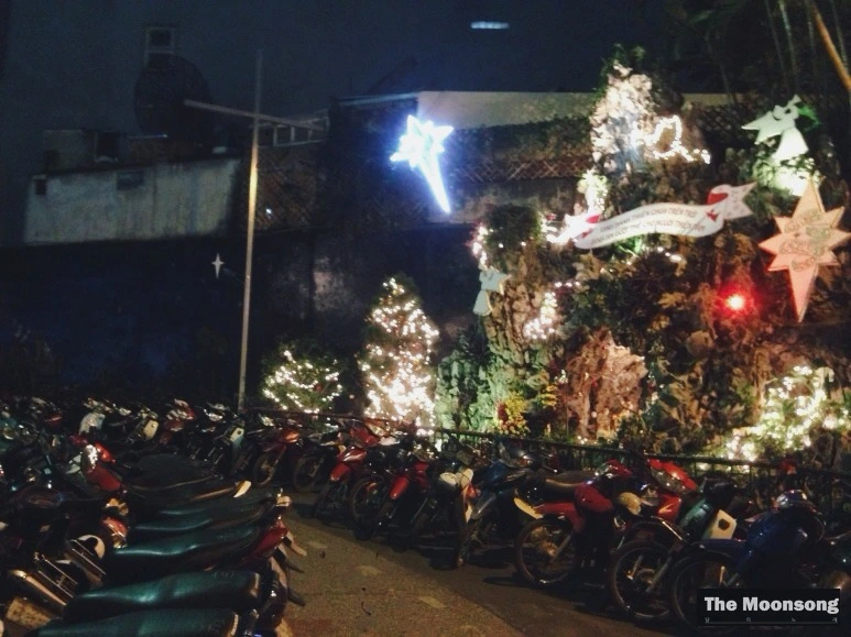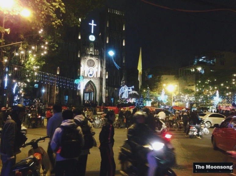 두 번째로, 지난 번 글에서도 소개한, 현지인들이 오토바이를 타고서도 들리는 카톨릭 성당도 인상적인 곳이었다. 화려한 조명과 북적이는 인파로 둘러싸인 성당은 활짝 열어놓은 문으로 베트남어 강독과 설교가 흘러나왔다. 동방박사와 말구유 속의 예수의 모습을 재현해놓은 모형 아래로 알록달록한 오토바이들이 빼곡히 늘어서서 주차장이 되어버린 예배당 마당 한 켠에 천주교라는 종교 역시 이들의 일상이구나 싶었다. 프랑스의 지배로 유입된 카톨릭은 식민지배를 청산하고 공산화의 길을 걷고 이제 막 개방을 시작한 베트남의 수도 하노이에서도 살아 남아 함께 숨쉬고 있는 것이다.
