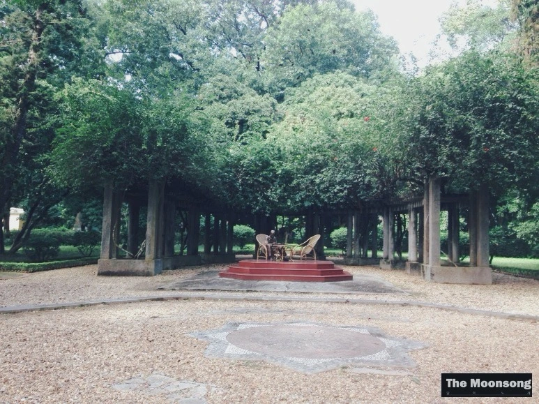 사람들로 붐비는 공관을 피해 옆길로 새서 느긋하게 산책을 하다가 노오란 공산당사 건물과 그 맞은 편에 푸르른 나무들이 반원으로 둘러싼 테이블을 맞닥뜨렸다.