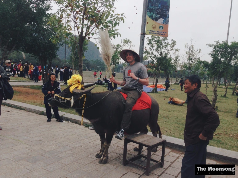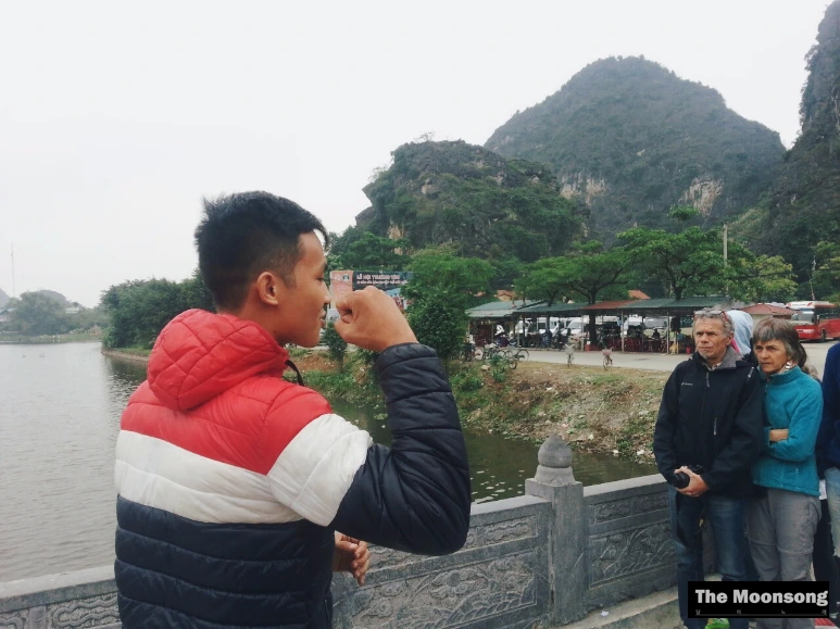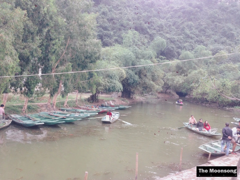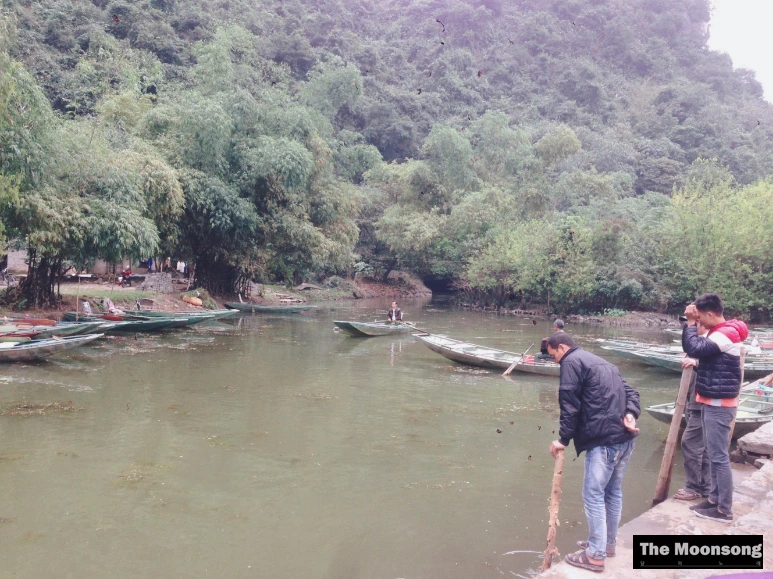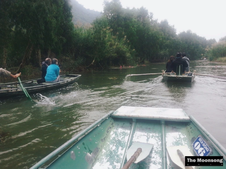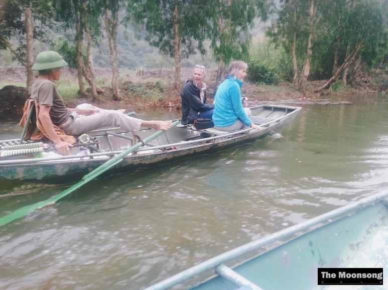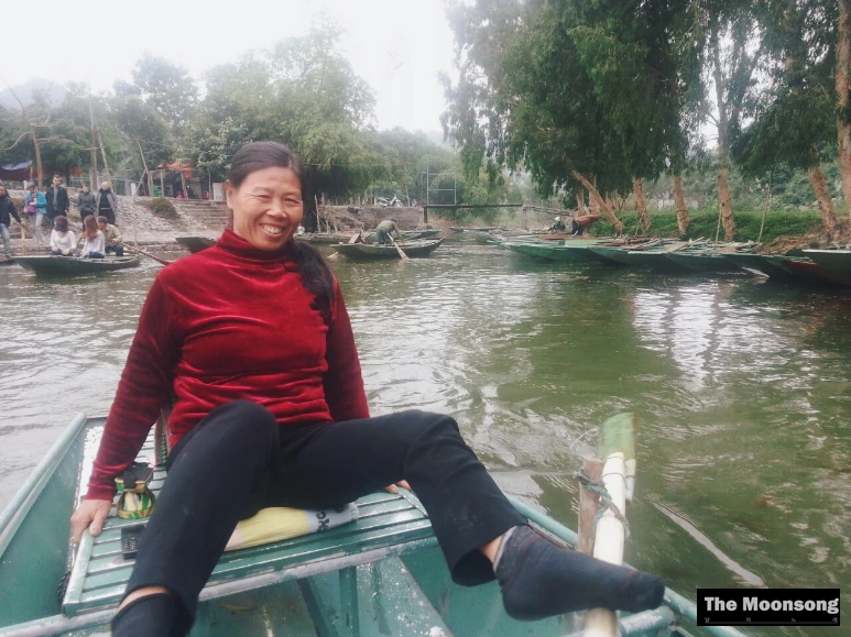 그리고 이어지는 또 하나의 일정은 땀곡의 독특함을 배로 한번 더 감상하는 것. 논과 둑을 따라 엉덩이가 아프게 달리고 돌아와서 얻는 보너스같은 시간이었다. 그곳에 사는 현지인들이 여행사와 계약을 맺고 노를 저어주는 일을 업으로 삼고 있었다. 뀐의 말에 따르면 정부에서 계약을 통제하기 때문에 매우 적은 돈을 받고 여행객들이 주는 팁이 주수입원이 된다고 했다. 팁문화에 익숙하지 않은 나에게는 팁의 적당한 액수를 아는 것이 가장 어려운 일이었다.