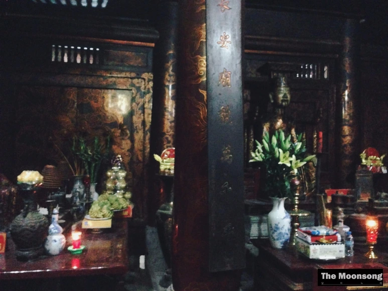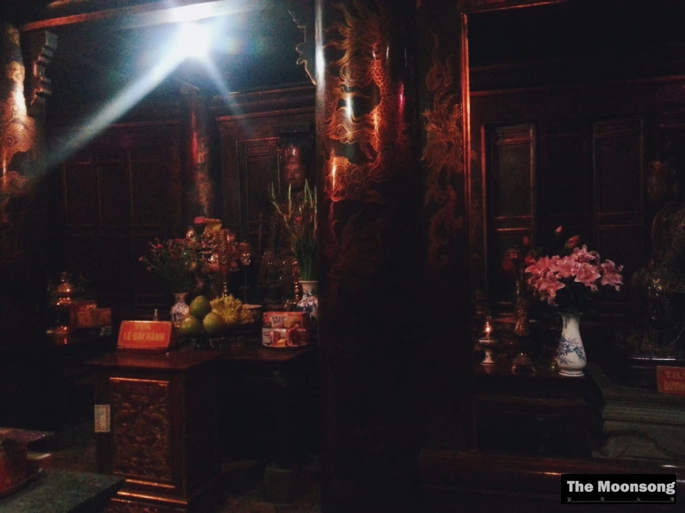 죽은 이에게 혹은 조상에게 무언가를 기원하는 마음은 어디에서나 찾을 수 있는 보편적인 현상이라는 것을 베트남에서도 다시 한 번 확인한다. 싱싱하게 보이도록 만든 모형 과일과 음식과 집기와 꽃들. 그것들이 놓여있는 화려한 무늬와 색깔의 탁자. 붉은 색을 주조로 하는 건물과 지붕. 제법 시간이 흘렀음에도 여전히 기리는 장소로 쓰고 있는 현재의 모습에 문화와 관습이라는 것은 얼마나 질긴 것인가 생각한다.
