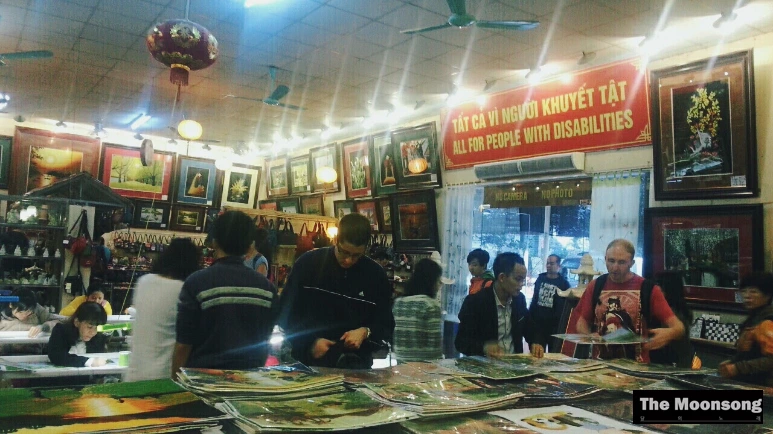다시 다음 투어장소를 향해 달리다 들린 휴게소에는 화장실과 간단한 매점 그리고 기념품점이 있었다. 화장실에 가려면 당연히 지나야하는 기념품점에서 모두들 한눈을 팔 수밖에. 수예작업으로 만든 액자들 너머 기념품점에서 아예 작업을 하고 있는가 하면 한편에는 땀꼭과는 상관없이 호치민의 전기와 엽서, 농라 모자, 손지갑 등 어디에서나 볼 수 있는 기념품들을 팔고 있었다. 우리나라든 베트남이든 기념품이란 예외없이 조잡하고 쓸모없는 것들이 대부분임에도 쉽사리 지나치지 못하고 넋을 빼고 구경을 하고 또 그 안에서 보물을 찾아보겠다고 신중하게 고르는 그 과정도 하나의 재미라면 재미랄까.