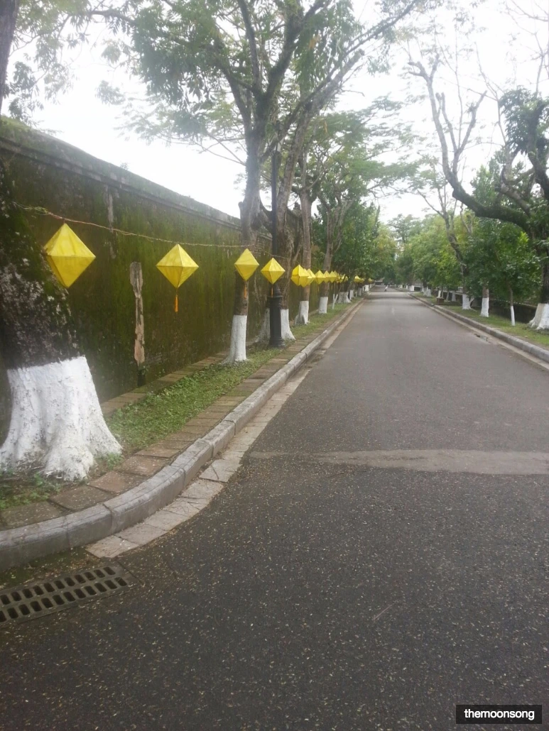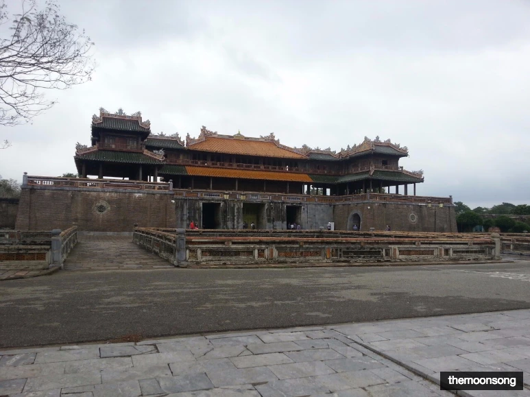 나는 우선은 그 거대한 크기에 압도 당했다. 왕궁은 좌우로도 앞뒤로도 한눈에 제대로 들어오지 않는 한없이 뻗은 직사각형 성곽으로 둘러싸여 있었다. 성곽 앞을 광장이 그 앞을 공원이 둘러싸고 있어 오토바이를 주차장에 맡기고 걸어서 입구로 진입하는데 까지도 한참이 걸렸다. 정면의 성문으로 티켓을 끊고 들어가 다시 성문을 바라보고 사진을 찍으며 새삼 내 선입견을 깨달았다. 베트남 왕조의 궁궐이 거대하다는 것에 얼빠진 듯 할말을 잃은 내 자신을. 이들의 궁궐이 우리나라의 경복궁과 같은 크기정도 일 것이라고 혹은 그리 크지 않을 것이라고 여기고 있었음을.