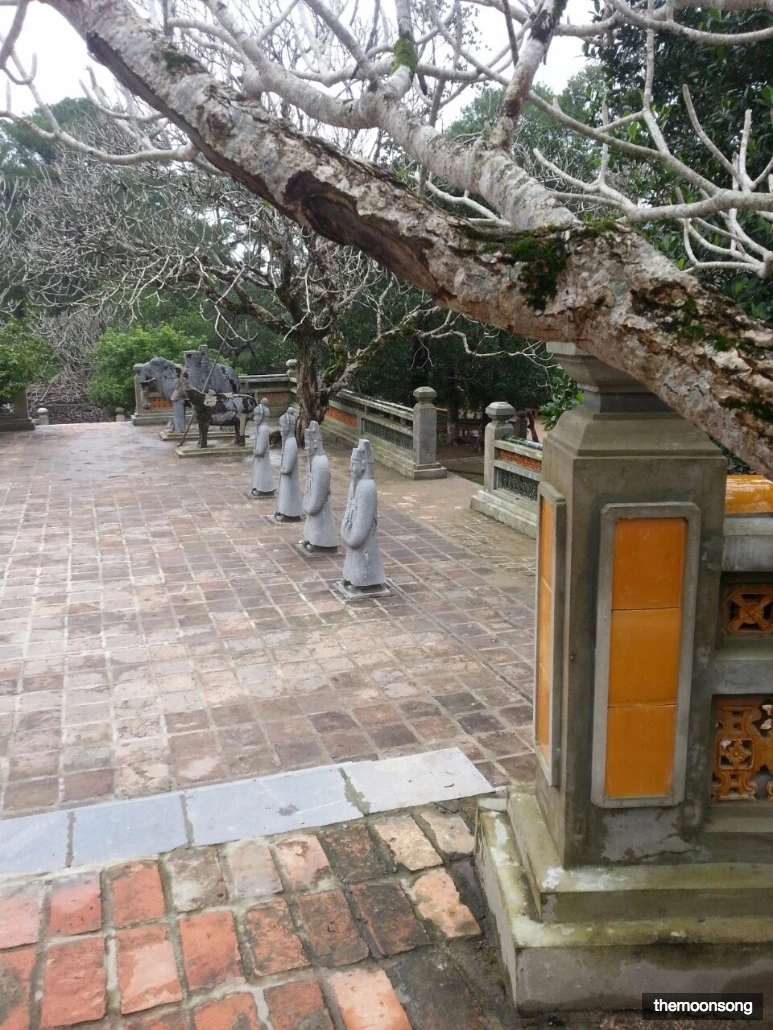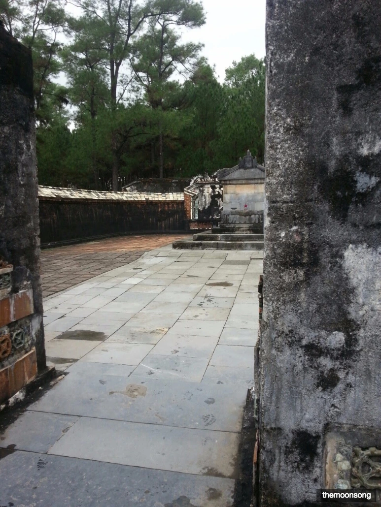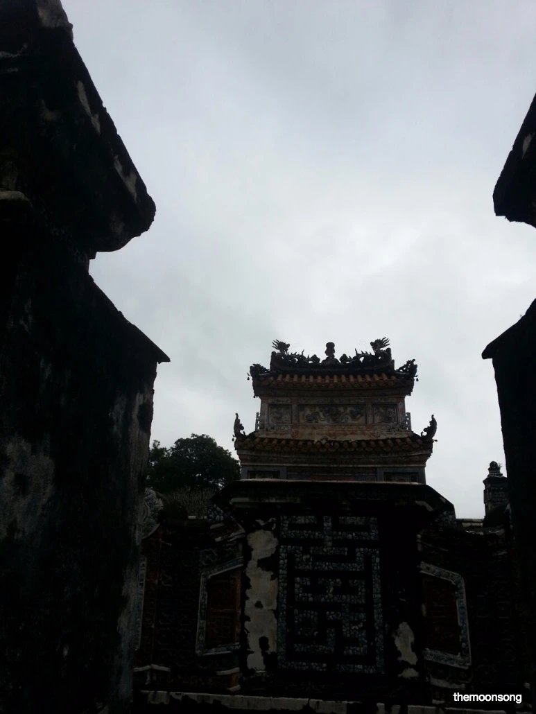 다른 왕릉들을 포기하고 한층 여유로워진 마음으로 느긋하게 경내를 거닐다가 마주친 이곳에 주저없이 찰칵. 벽이 무너져 내려 단면을 칼로 잘라낸 듯 벽의 이쪽과 저쪽이 그대로 드러나 있었다. 왕릉이 견뎌온 시간의 더께를 보여주고 있었다. 왕릉을 관리하는 이들의 삶과 왕릉이 지나온 시간이 벽면을 두고 마주하고 있었다. 우리가 여행에서 유적지를 찾는 이유는 바로 이것, 현재를 거슬러올라가 과거와 만나고 또 다시 현재와 마주하기 위해서인지도 모른다고 생각했다. 왕릉을 떠나 다시 후에 시내로 돌아와서도, 왕궁에서 발달한 후에 음식을 먹고 마시고 즐기면서도, 후에를 뒤로 하고 또 다시 기차에 오르면서도.