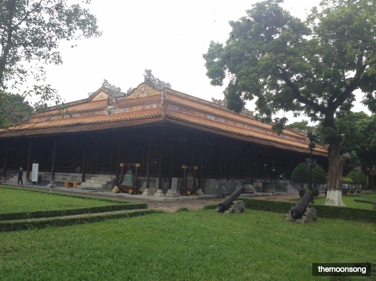 문을 지나 왕궁의 안쪽으로 깊숙이 들어가면 들어갈수록 풀이 무성하게 자라는 폐허가 펼쳐졌다. 프랑스식민지에서 미군정으로 넘어가고 지난한 전쟁 끝에 후에 왕궁의 많은 건물들도 파괴되고 폐허가 되어 수풀만 자라고 있다고 했다.