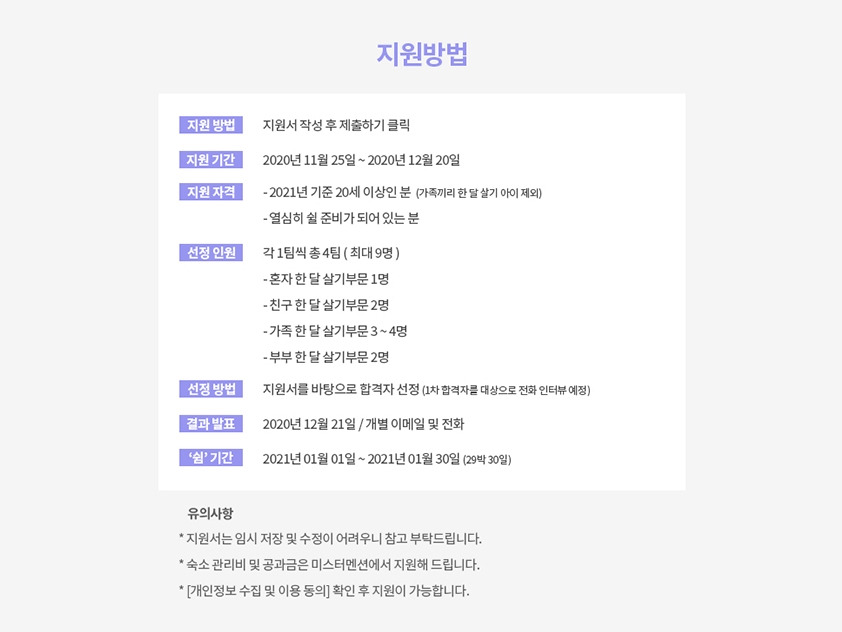 미스터멘션 한 달 살기 이벤트는