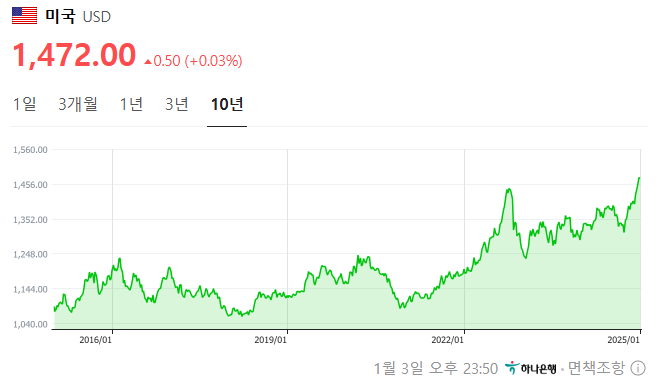 최근 원 · 달러 환율이 치솟고 있다는 뉴스가 많이 보인다. 작년 3분기까지만 해도 1,300원대였던 환율이 11월 미국의 트럼프 대통령 당선 시점에 1,400원을 돌파하더니 '12· 3 비상계엄 사태' 후로는 1,470원대까지 급등했는데 이는 글로벌 금융위기가 있었던 2009년 3월 이후 약 16년 만에 가장 높은 수준이라고 한다. 게다가 당장 경제가 좋아질 부분이 보이질 않아 1,500원이 넘어갈 가능성까지 있다고도 한다. 이러한 현상을 온갖 곳에서 '위기, 위기, 위기'라고 하는데 금융 문맹이나 다름없는 나는 왜 환율이 오르고 그게 어떤 문제가 되는지를 잘 실감하지 못했다.