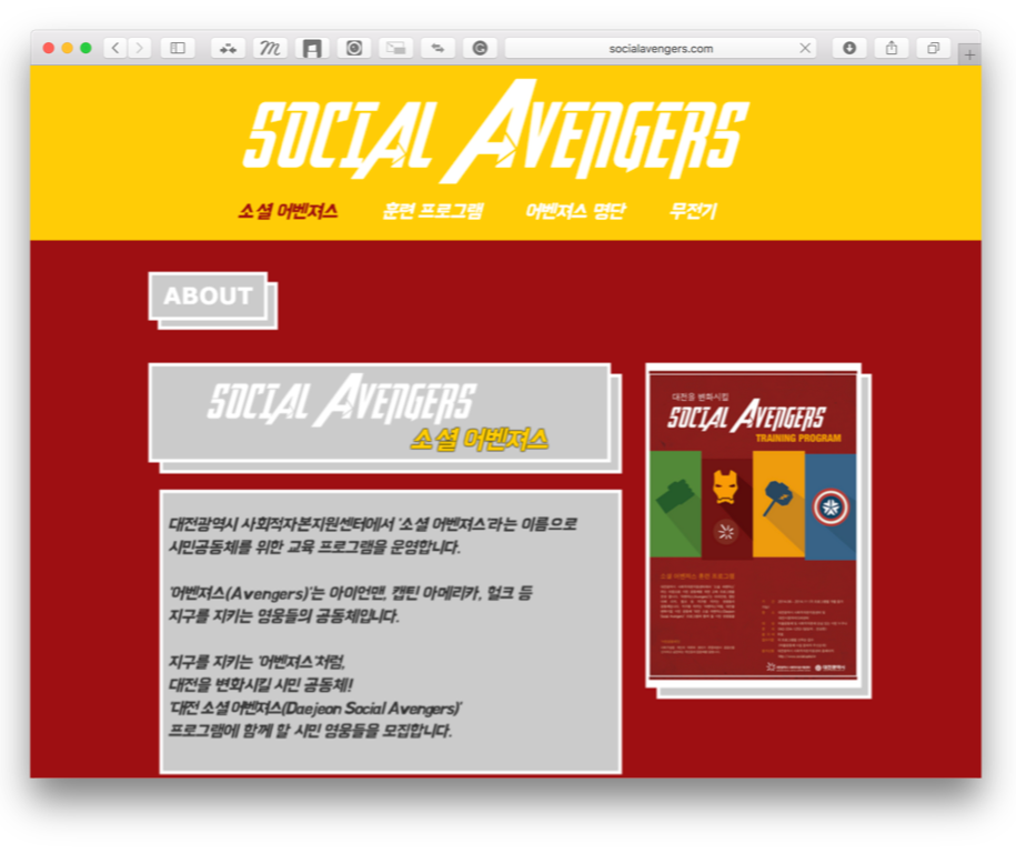 원래는 '시민역량강화사업'이었으나, 이름만으로도 노잼이어서 마블코믹스의 '어벤저스'를 모티브로 하여 사회를 변화시킬 시민 영웅을 훈련시키는 컨셉으로 기획했다.