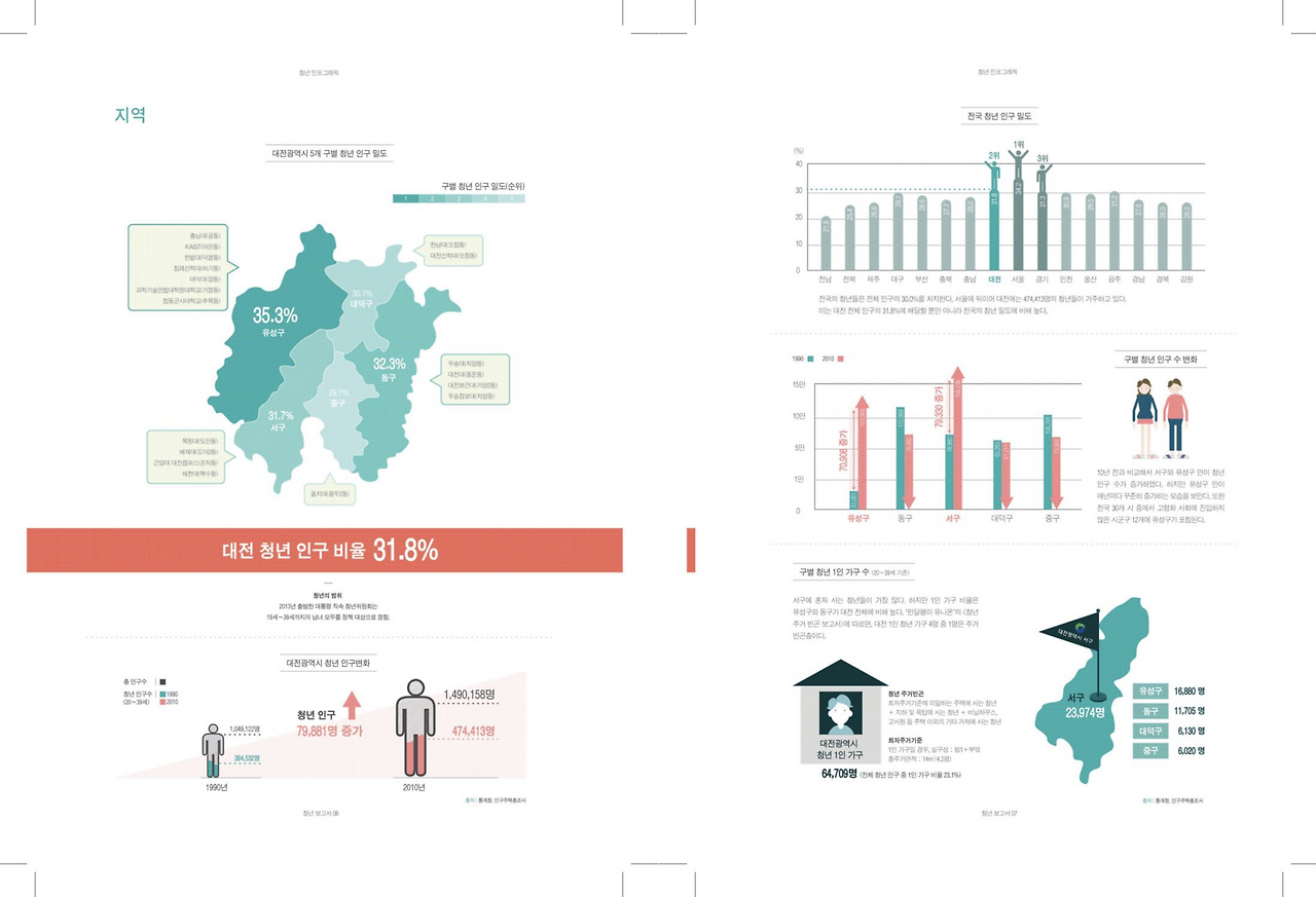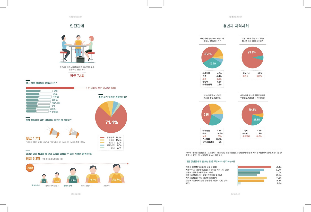 이전에는 청년 관련 자료가 없기도 없을뿐더러, 설령 있다 하더라도 이해하기가 어려운 통계와 용역보고서 위주였는데, 인보그래픽으로 만들어진 잡지같은 보고서를 통해 많은 곳에서 우리 자료를 차용하기 시작하면서 대전의 청년문제에 대한 공감도가 점점 확산되기 시작했다.