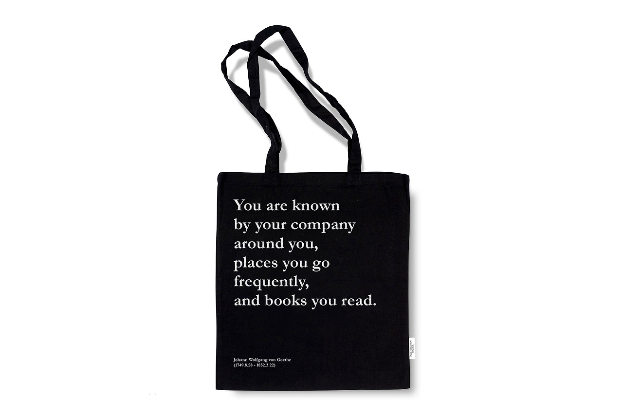 '유어왓츄리드'의 캐치프레이즈인 괴테의 문장이 담긴, 에코백과 유리잔을 만들기도 했다.