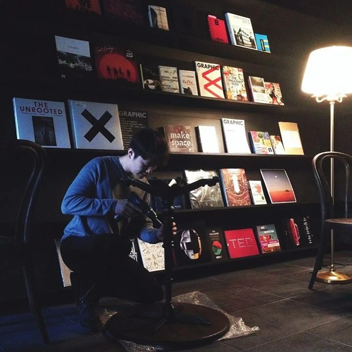 오래된 건물이어서 제대로 도면이 안 남아있었기 때문에, 스마트폰 증강현실 어플로 현장 도면을 스캔하고 크고 작은 13개의 책장을 오픈소스 툴로 디자인했다. 서점 공간의 책장은 책을 옆으로 꽂지 않고, 책의 전면이 보이도록 디자인했다.