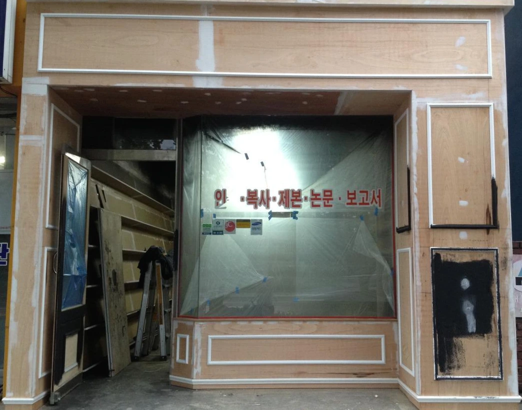 유동인구가 별로 없고, 차가 많이 다니는 큰 길가였기 때문에 파사드에 에너지를 집중할 수밖에 없었다. 차를 타고 빠르게 지나가는 와중에 시선을 끌어야 했기 때문에 건물 외벽과는 전혀 다른 느낌이 나도록 미송으로 전체를 마감 처리하고, 클래식한 느낌이 나되 과하지 않은 몰딩으로 장식했다.