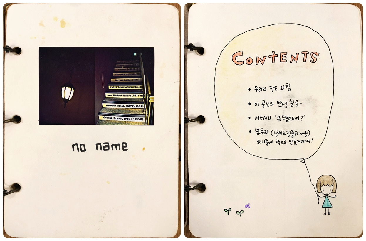 우리는 새로운 복합문화공간을 표방했지만, 대부분의 사람들이 카페라고 부르면서 ‘이름 없는 카페’가 되었고, 나중에는 ‘노네임 카페‘라고 불리기 시작했다.