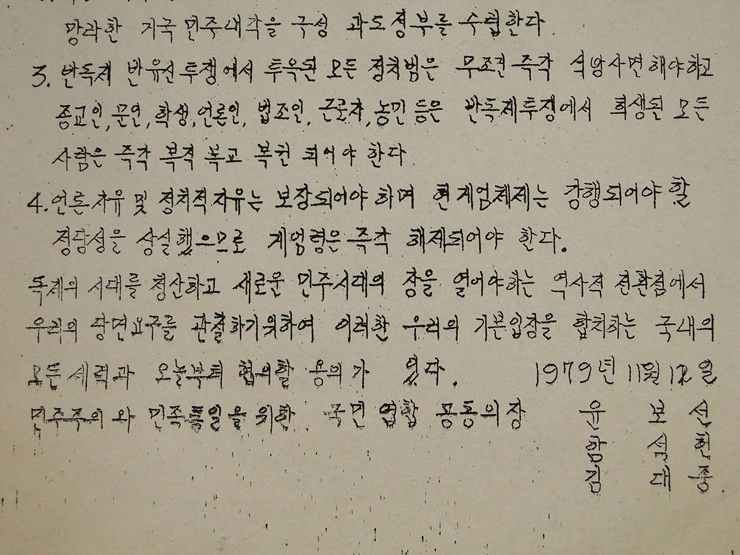 "…북괴는 혼란한 국내정세에 고무되어 대규모 기갑부대를 전방으로 추진 배치하고, 인민무력부장 오진우는 무력부 상황실에 나와 사태추이를 주시하고, 또한 인민군 총참모장 오극렬은 최전방인 개성에 나와있는 등 군사적 긴장상태를 고조시키고 있어 국내외적으로 국가안보와 국민생존권이 크게 위협되는 위태로운 상황에 처하게 됐다………북괴가 곧 남침을 감행할 것이라는 첩보로 인해 건국 이래 최대의 난국을 맞게됨으로써…"