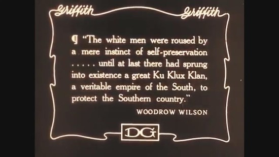 영화는 "아프리카인을 미국에 들여온 것이 모든 불행의 씨앗이었다."로 시작하더니, 말미엔 이런 대사가 나옵니다. "아리아인의 타고난 권리를 수호하기 위해 북부와 남부는 연합해야 한다."
