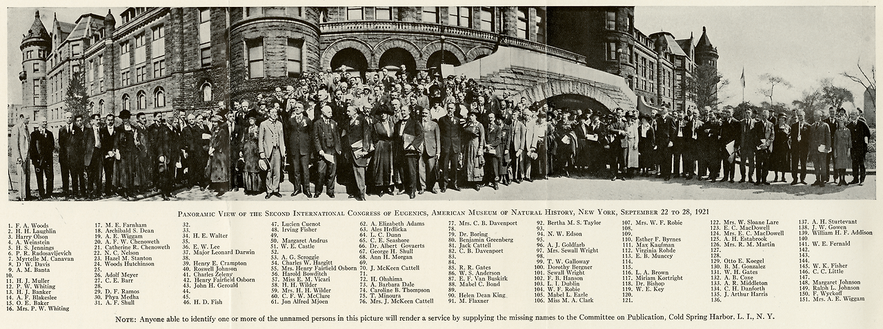 제2회는 1921년 미국 뉴욕에서 열렸는데 알렉산더 그레이엄 벨(Alexander Graham Bell)이 의장을 맡았습니다. 1932년 제3차엔 '국제우생학회연맹'를 만들며 만장일치로 에른스트 뤼딘(Ernst Rüdin)을 의장으로 선출하는데, 다음해 1933년 히틀러가 집권하자 그는 즉각 나치의 인종차별정책에 부역하게 됩니다.
