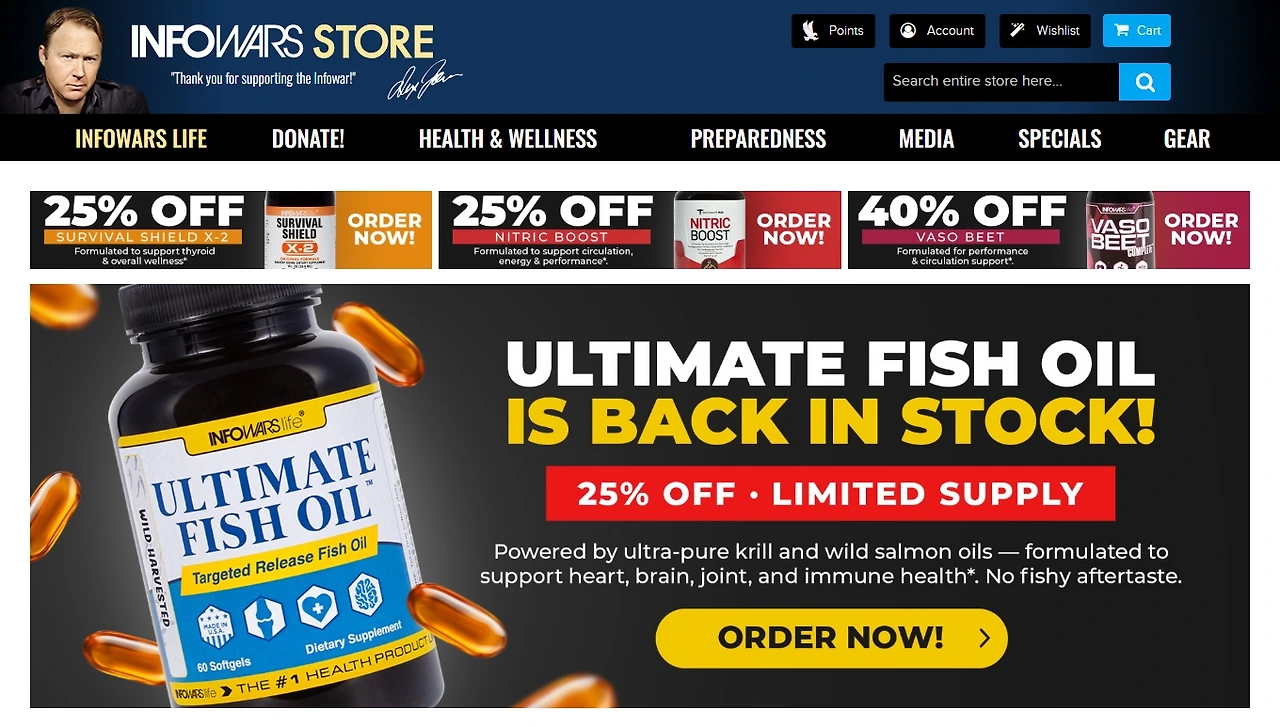 그의 웹스토어는 2015년 기준 연 매출 2,000만 달러를 돌파했고, 판매의 70% 이상은 이러한 건강보조제품에서 발생했다. 광고와 방송은 분리되지 않았고, 마치 설교와 성찬이 하나의 순서 안에서 교차하듯 InfoWars는 콘텐츠와 상품이 구분되지 않는 구조로 운영되었다. 그는 자신을 “정보전의 예언자”로 불렀고, “두려움은 무기지만 해독은 내 편”이라는 문구를 반복했다.