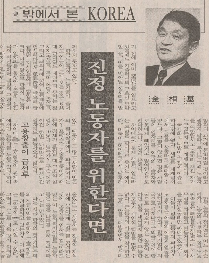 분위기는 민주화 이후 달라졌다. 갑자기 불어 닥친 세계화 바람에 는 뒤집어진 시각으로 노동자를 바라보기 시작했다. 한 논설위원은 사설에서 “노동조합 때문에 외국 기업이 한국을 떠난다”며 “일 안 하는 일부 노동귀족이 빈둥거리며 회사를 후려칠 궁리만 짜낸다”고 비난했다. 파업하는 노동자는 억압받는 시민이 아닌 회사를 망치는 불순분자가 됐다. 이때 등장한 ‘노조 악마화’ 프레임은 IMF 외환위기를 거치며 더 굳어졌다.