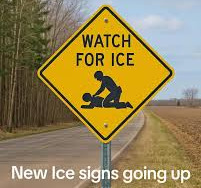 - 연중 추운 날씨가 많은 캐나다에는 빙판길을 조심하라는 뜻에서 이런 표지판을 내건다.