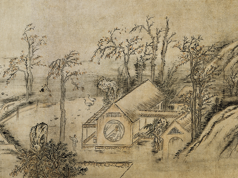 김홍도의 <추경부도> 부분도, 중국 가옥인 둥근 달창 안의 사람은 송나라 문인 구양수이다.
