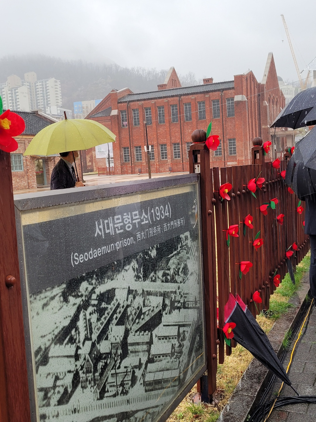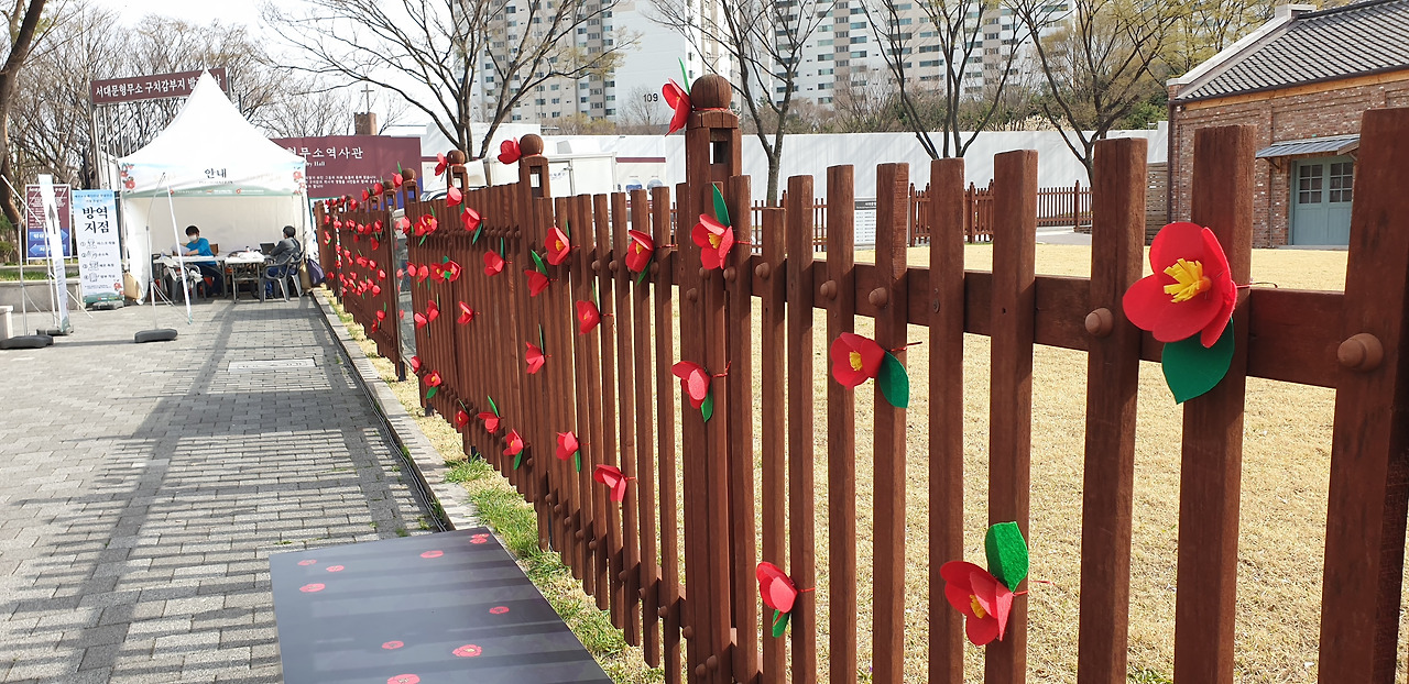 추모제 전날 서울 마곡중학교 학생들이 형무소 벽을 동백꽃으로 장식해주었다.