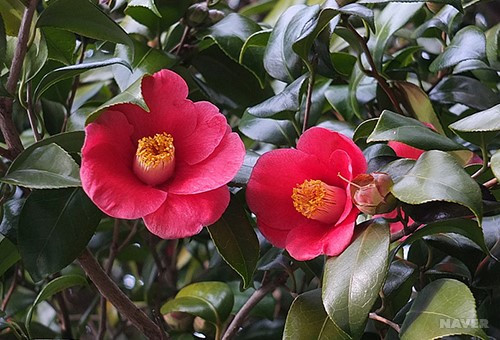 여덟 살 되던 성탄절에 작은아버지가 결혼을 했다. 결혼식 전날 할머니 집 정낭(대문)이 치워지고 동백 잎으로 장식한 커다란 아치가 세워졌다. 보통은 동백 잎으로만 꾸미는데 빨간 꽃잎과 계란 노른자처럼 선명한 수술을 가진 동백꽃이 윤나는 검 녹색 사이사이로 보였던 것은 겨울에 피는 꽃이어서 가능했으리라. 하얀 창호지에 먹으로 멋들어지게 쓴 한자, (아마 ‘祝 結婚’‘이리라) 휘장도 걸렸다. 이틀간 치러지는 작은아버지 결혼식에 조카인 내가 얼마나 설치며 다녔는지 두고두고 어른들 입방아에 올랐다. 초등학교에 입학하며 처음 맞는 서양 명절처럼 생각되던 성탄절 분위기와 할머니 집 왁자한 잔치 풍경은 묘한 조화를 이루며 나를 설레게 했다. 술에 취한 어른들은 동백 아치 입구에서 쓰러져 빈축을 샀다. 그때는 동백꽃이 잔치 꽃이라고 알았지 예쁘다는 생각은 못했다. 그 꽃은 결혼하고 나이가 삼십을 넘어서야 보였다. 단단한 꽃봉오리가 터지며 활짝 피었을 때까지, 그리고 통꽃으로 툭, 툭 낙화하는 서늘함까지 지극한 아름다움으로 다가오는 것이다.