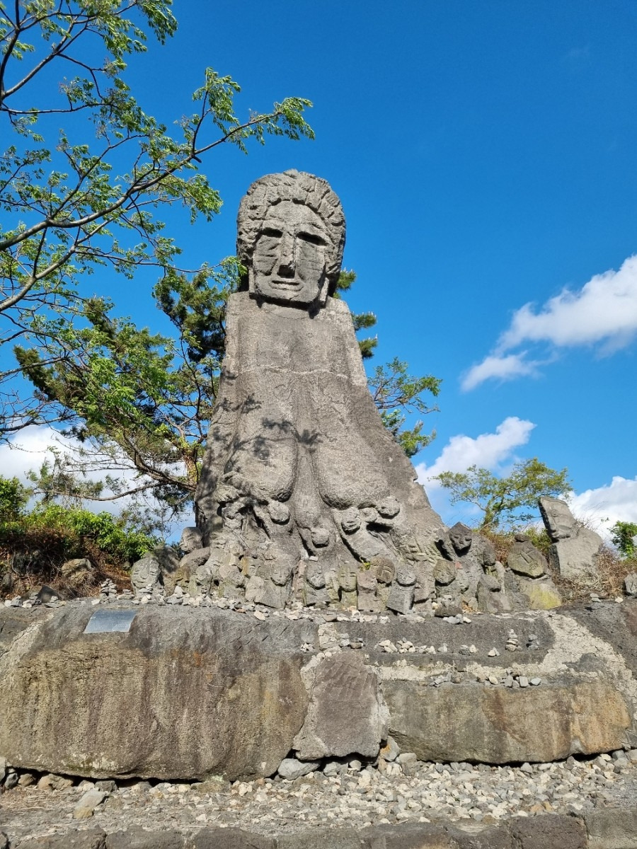 제주 신화에 나오는 거대 여신 설문대 할망(할머니)는 제주 창조신이다. 창조란 곧 생명을 낳고 기르는 일이니 돌조각가 장공익(작고)은 설문대 할망을 젖가슴에 오백 아들이 매달려 젖을 먹고 있는 형상으로 만들었다.