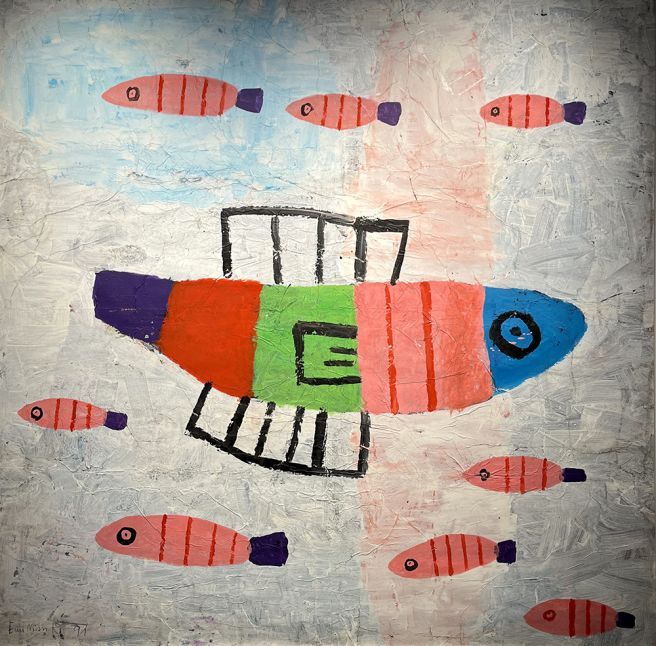 <큰 물고기 식구들>, 한지에 혼합재료, 275*279, 1991