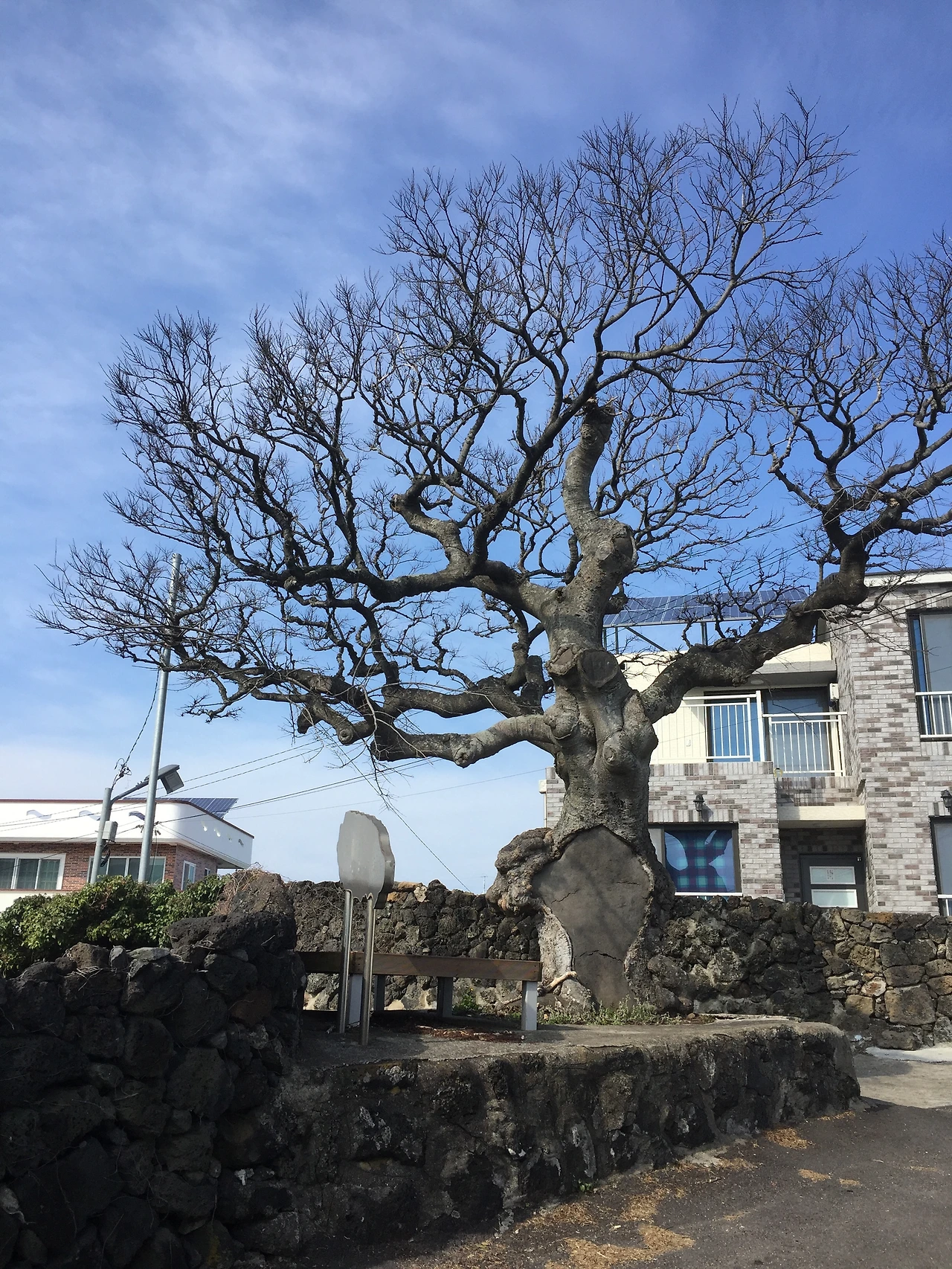 겨울 제주 마을들을 돌아다녀 보라, 어느 마을에도 팽나무 한 두 그루가 버티고 있다. 삭풍에 쓸려 한쪽으로 기운 나무는 바람에 저항하며 살아낸 제주의 자연과 사람의 모습이다.