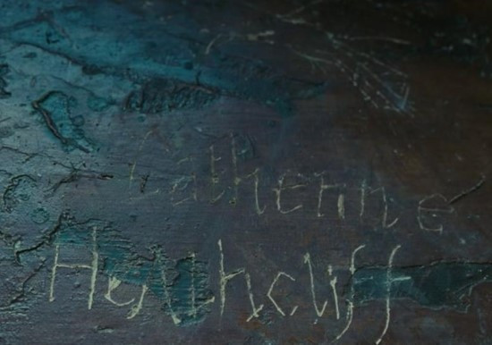 캐더린의 침실 벽에 그려진 이 낙서에는 나는 새 밑으로 두 사람 이름이 새겨져 있다. 새가 그려진 침실 벽, 이 것은 둘의 유년을 공통의 유대로 묶는 역할을 한다. 언니 샬럿은 에밀리를 부드러운 비둘기가 아니라 고독을 사랑하는 갈까마귀라고 불렀다.