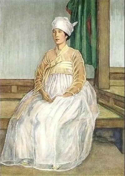 이 과부는 남편의 죽음을 마냥 슬퍼할 처지가 못 되었다. 외아들은 일제에 끌려갔고 그녀는 언제 그 아들을 다시 만날 수 있을지 기약이 없는 상태였다. 아들은 3.1 운동에 적극 가담한 애국자였다. 이 그림을 그린 것은 여름이었다. 여자는 전통적이고 폭넓은 크림색 치마를 입었고 그 속에는 헐렁한 바지를 입고 있었다. 저고리는 뻣뻣한 삼베였다. 북부지방에 사는 사람들은 자기들의 풍습대로 머리에 두건을 두른다. 무척이나 더운 날씨인데도 여자는 그런 두건을 쓰고 있었다. 여자의 머리는 숱이 많고 길었으며 그것을 땋아서 머리에 감아올리고 있었다. "