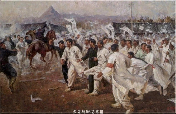 이 작품은 모스크바 제 6회 '세계청년축제'(1957)에 출품한 월북화가 이쾌대의 그림이다. 그동안 독립기념관 등에서 내가 본 1919년 3.1 운동을 표현한 부조, 그림 등은 고전적 이미지가 강했다. 2018년, 서울역사박물관 기획전시, <평양책방>에서 이 그림을 처음 봤을 때, 제주의 1947년 3.1운동을 연상시켰다. 그리고 비폭력 무저항의 기미년 3.1 운동이 내가 본 대부분의 역사화처럼 가만히 서서 만세삼창을 한 게 아니라, 조신민중은 저런 동적 에너지로 일어났음을 깨달았다. 만세운동의 기세에 말도 놀라고 사람도 말처럼 뛰고 있다. 나라 뺏긴 지 10년 째인데도 우리 정신은 빼앗기지 않았음을 보여주는 장쾌한 장면이다. 이 운동에 고무되어 중국 5.4운동이 일어난 것을 생각하며 브루주아 민족운동으로 폄하된 3.1만세운동의 세계사적 의미를 다시 생각해 본다.