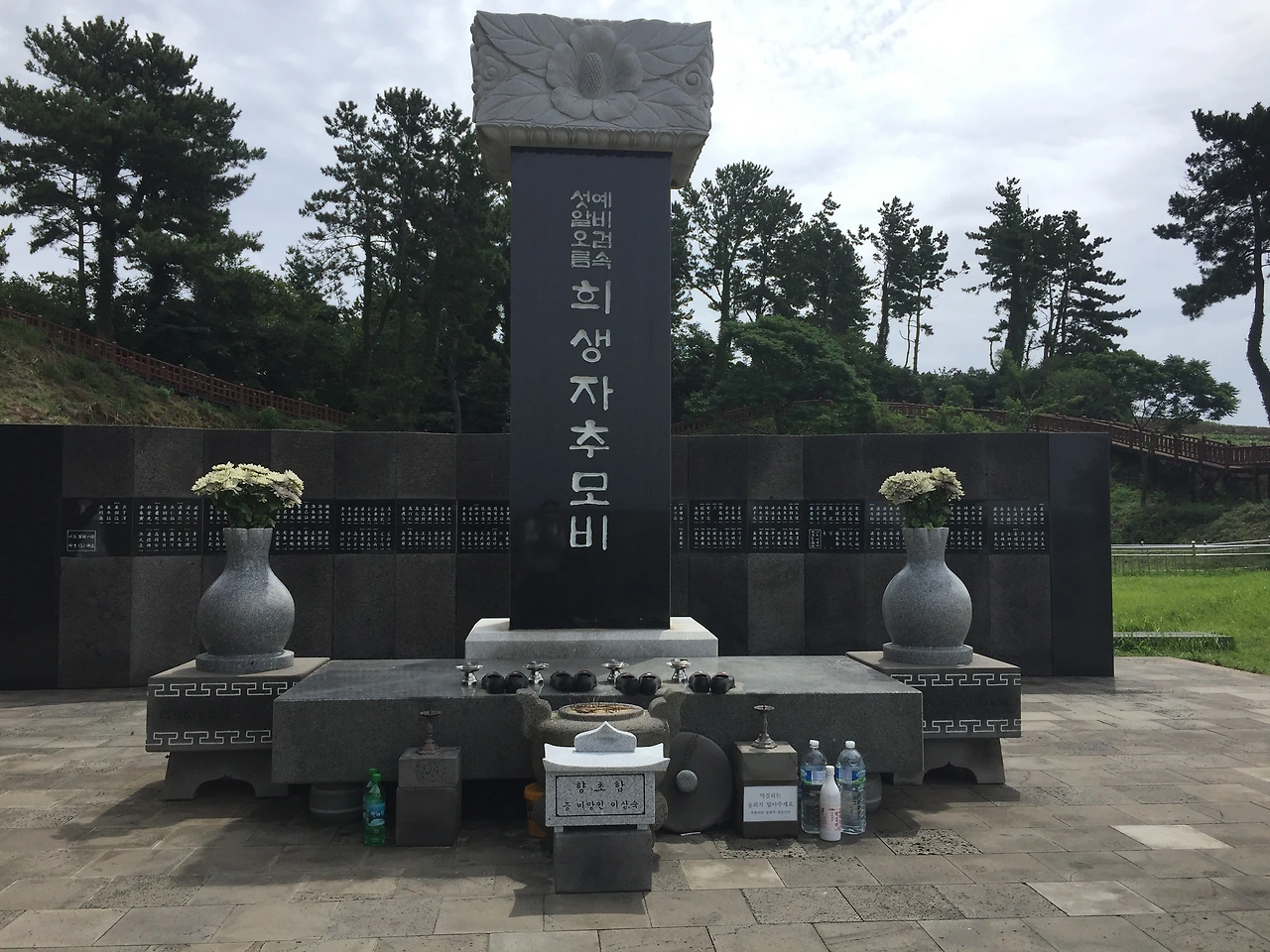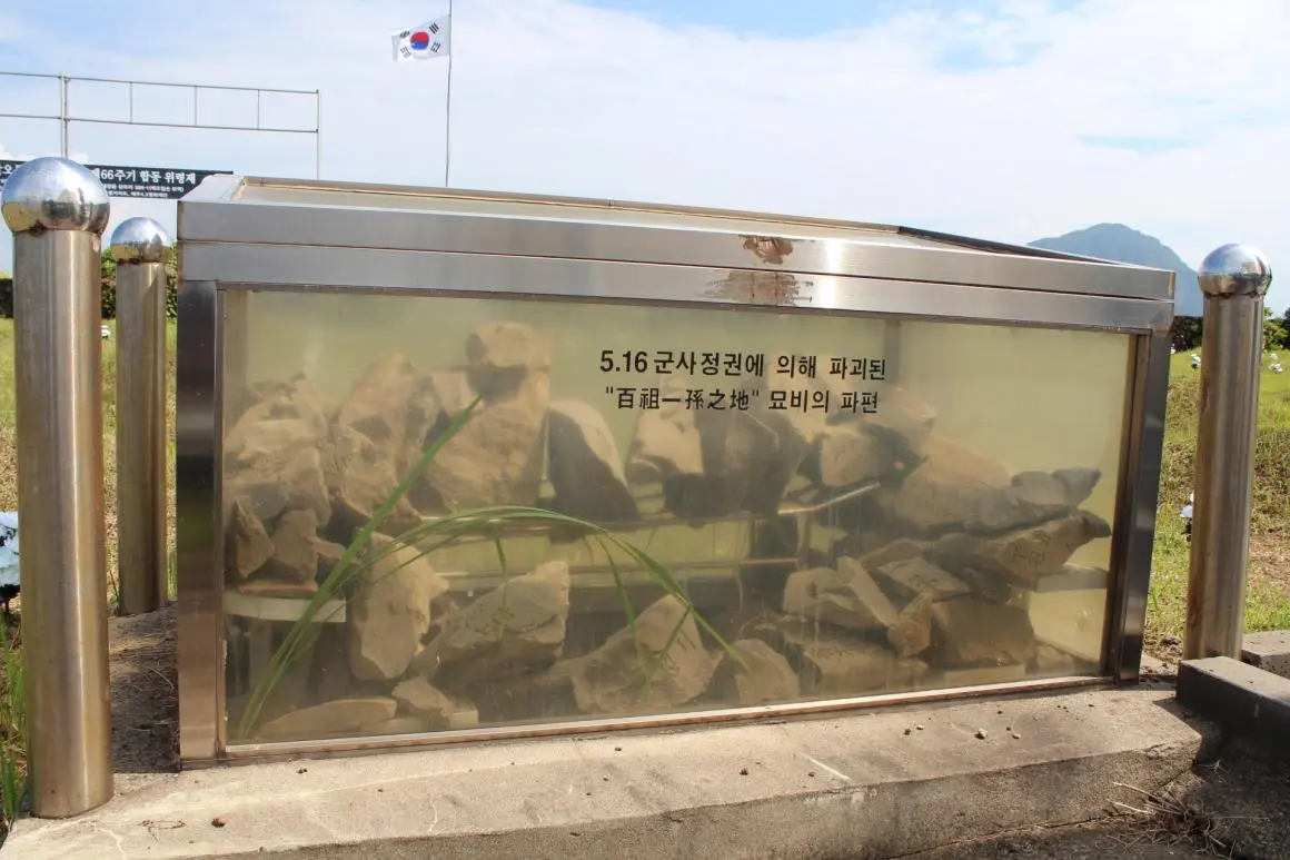 자신들이 섯알오름 일제 고사포 진지였던 사형장으로 가는 것을 눈치챈 사람들은 트럭 위에서 신발을 하나 씩 던져 자신들이 총살된 장소를 알렸지만 유족들은 접근할 수 없었다. 유족들에 접근할 수 있었을 때 이미 시신은 부패되고 녹아 문드러져 바가지로 뼈만 건져냈다. 집안의 남자들이 다 죽고 혼자 살아난 자신은 사람이 아니라고 하는 위의 할머니는 그 일을 했던 분이다. 이렇듯 섯알오름에 <벡조일손 묘>가 조성되고 의젓한 위령비가 세워지지 까지는 사연이 많았다. '조상은 100 명이나 자손은 하나'라는 뜻의 백조일손 비석을 처음 세웠을 때 박정희 정권은 " 빨갱이들 비석을 세운다"며 비석을 부쉈다. 다행히 그 파편을 모아 민주화의 힘으로 새로 조성된 4.3 위령비 옆자리에 조성하여 지난한 역사의 발자취를 알게 해 준다. 이 사례처럼 어두운 과거를 깜쪽같이 없애는 것보다 그대로 두고 설명 안내판을 하는 게 더 낫지 않을까 생각한다.