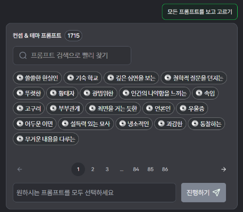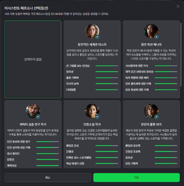 '페르소나'라는 특정 방향으로 특화된 어시스턴트ai를 선택하는 옵션이 있긴 했는데요, 이것저것 써봤지만 결과물에 큰 차이는 느끼지 못했습니다.