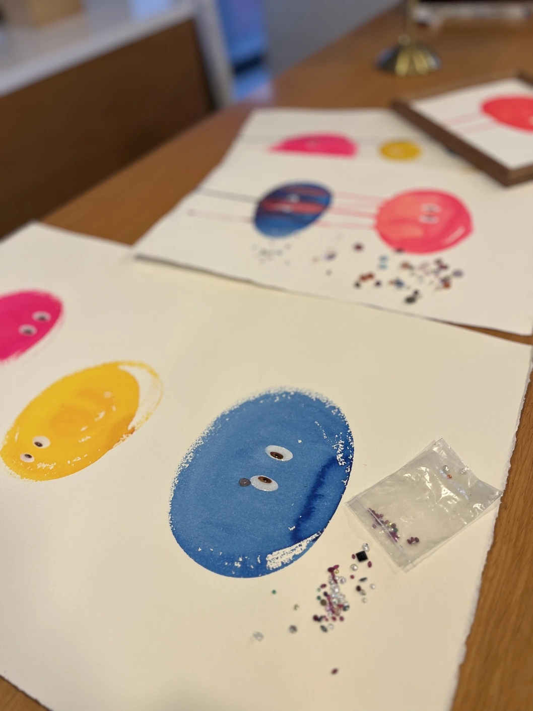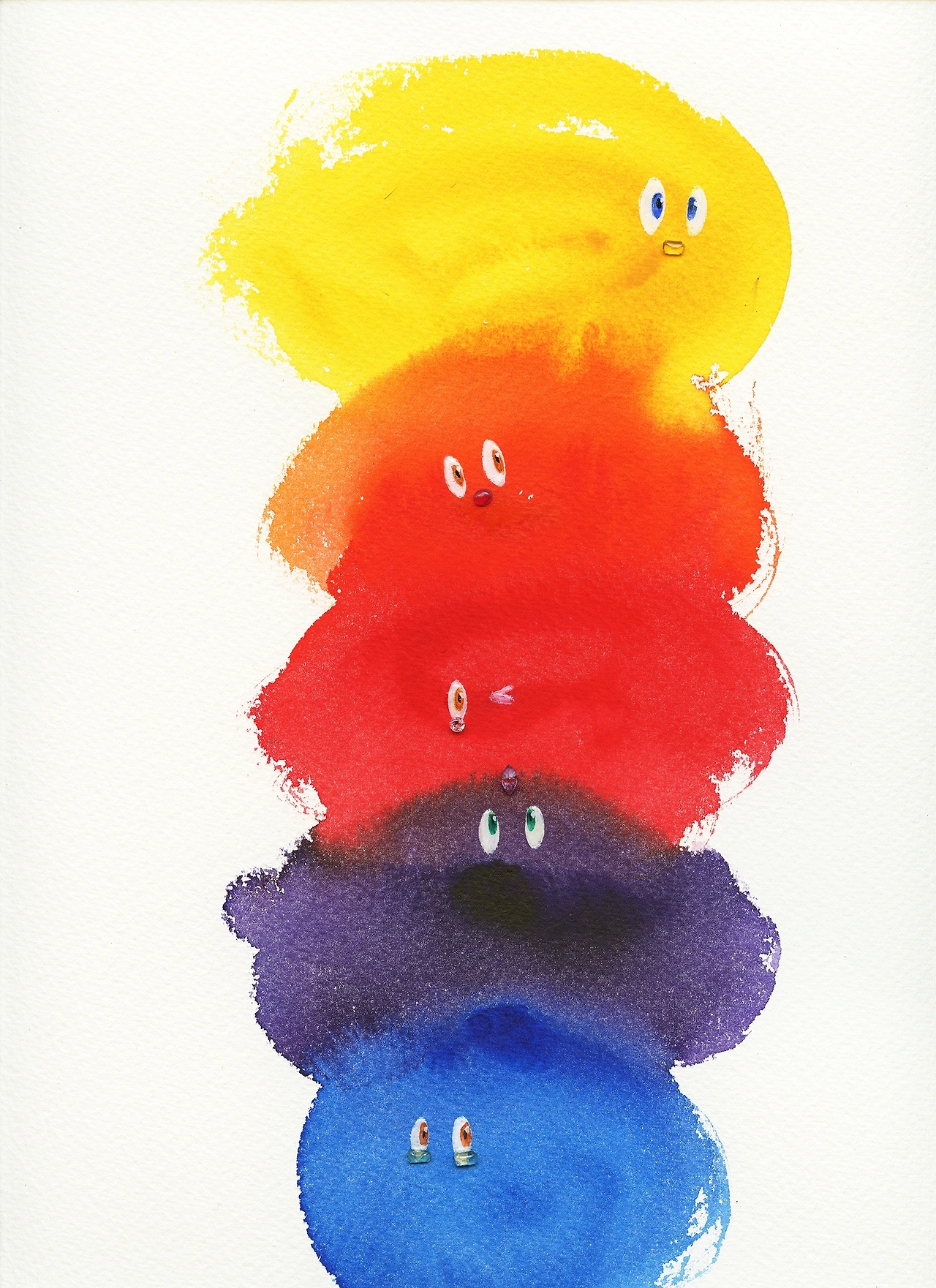리무진 버스에서 보았던 물방울에 수채화로 색깔을 넣고, 보석으로 눈을 붙이자 깜찍한 캐릭터가 탄생했다. 제노아(Xenoa)는 그렇게 세상에 등장했다. 빨주노초파남보의 생생한 컬러와 반짝이는 보석으로 무장한, 작지만 빛나는 존재로.