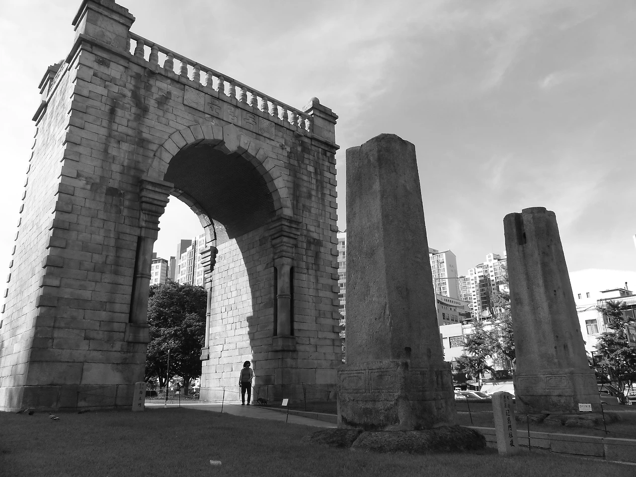 단체 사진을 찍는 학생들을 뒤로하고. 저는 서대문 형무소 바로 옆에 있는 '독립문'까지 가보기로 했습니다. 걸어서 5분 거리죠.