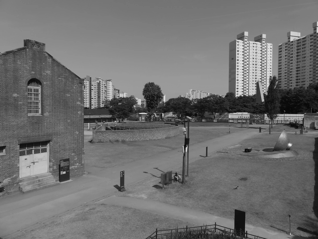 위에서 바라보니, 지금의 서대문 형무소는 아파트로 둘러싸여 있습니다. 뭔가 이질감이 들었습니다. 불과 100년 전, 누군가는 떠올리기조차 힘든 공간 옆에, 누군가에게는 포근한 아파트가 즐비해 있으니까요. 빠르게 우리의 상처가 치유되고 있음을 동시에 느꼈습니다.